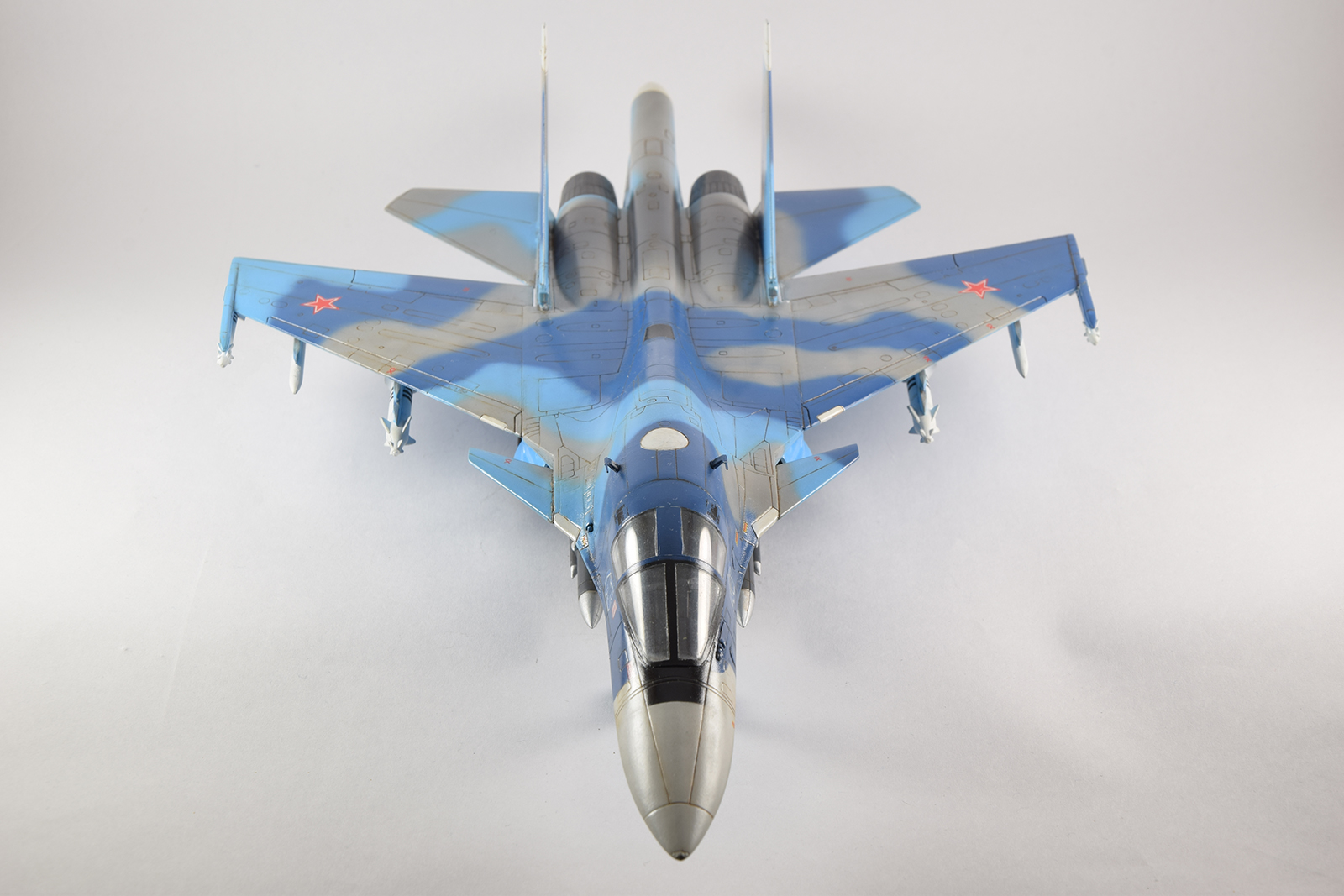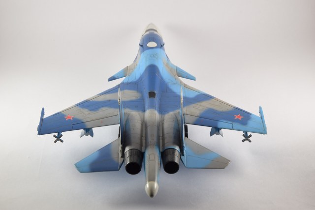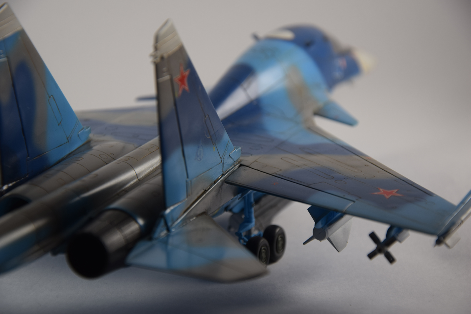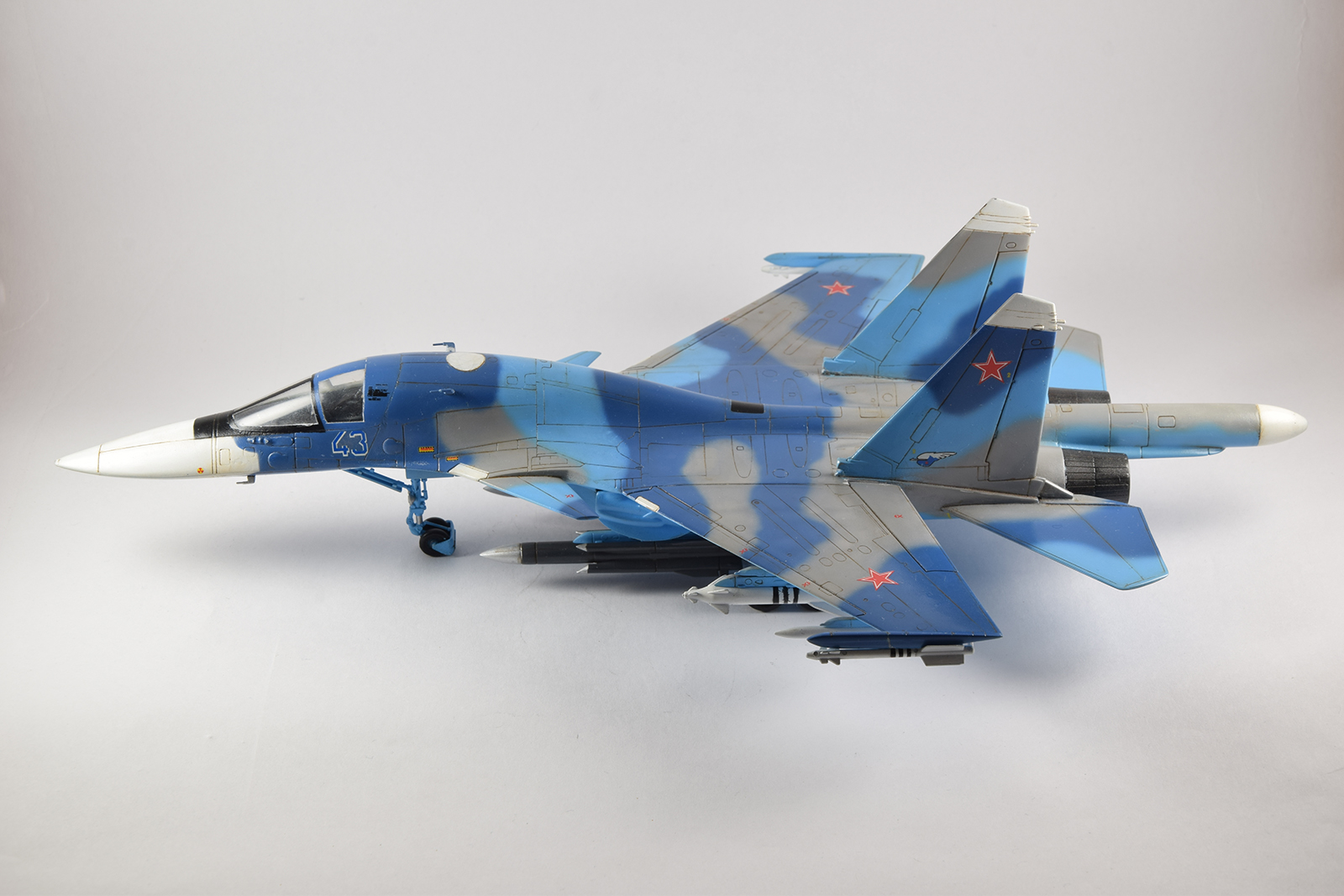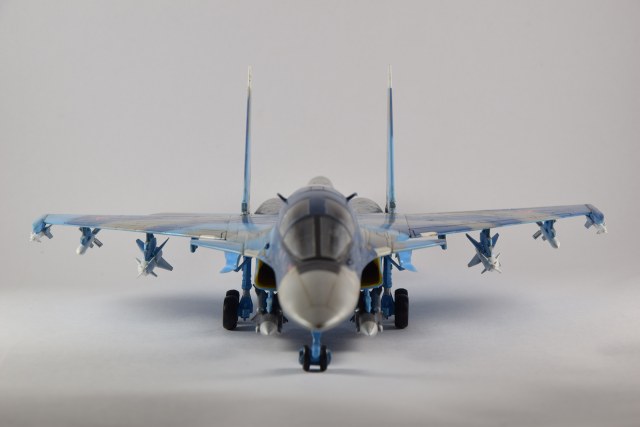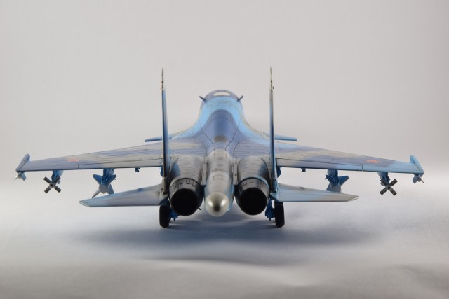 Как тренировка перед следующей моделью Су-34 от Звезды вполне себе даже и ничего. В следующий раз обратите внимание на швы половинок ракет и следы от толкателей на них же. Также запасайтесь фотографиями реальной машины, и расшивка не такая уж мудреная штука.