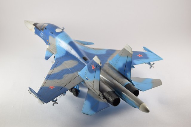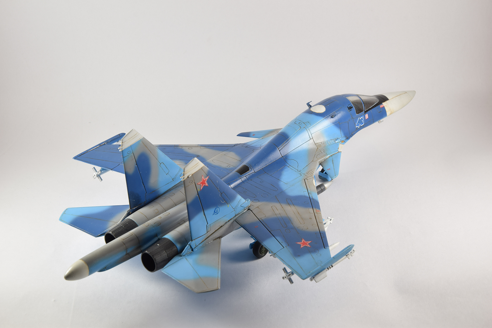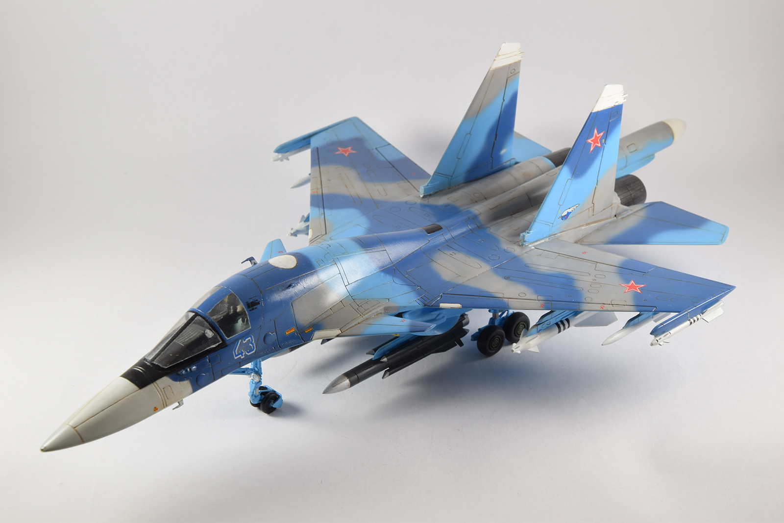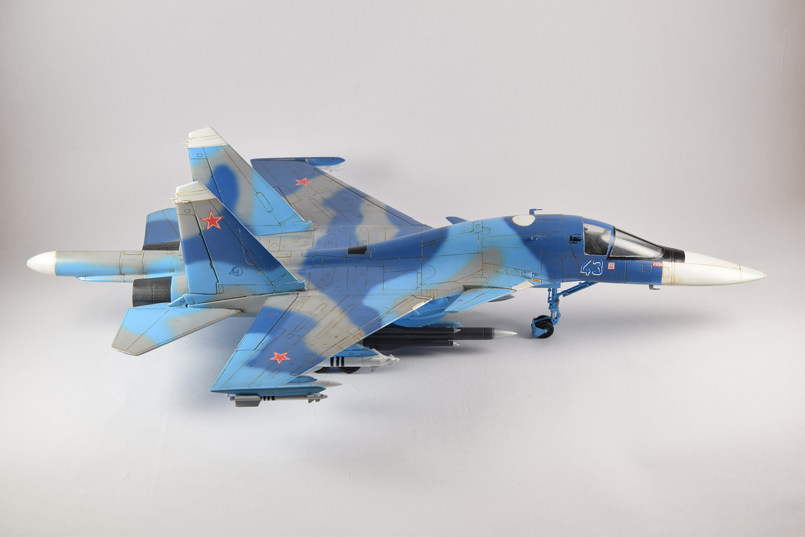 Пилил я как-то 43й.В цвет Вы точно не попали.Я подбирал себе на подборе автоэмалей.Модель у Вас получилась вполне нормально,но видно,что изучить прототип или аналог Су-34 того периода,этим Вы себя обременять не стали.А стоило!
