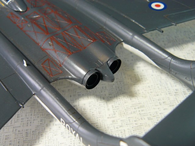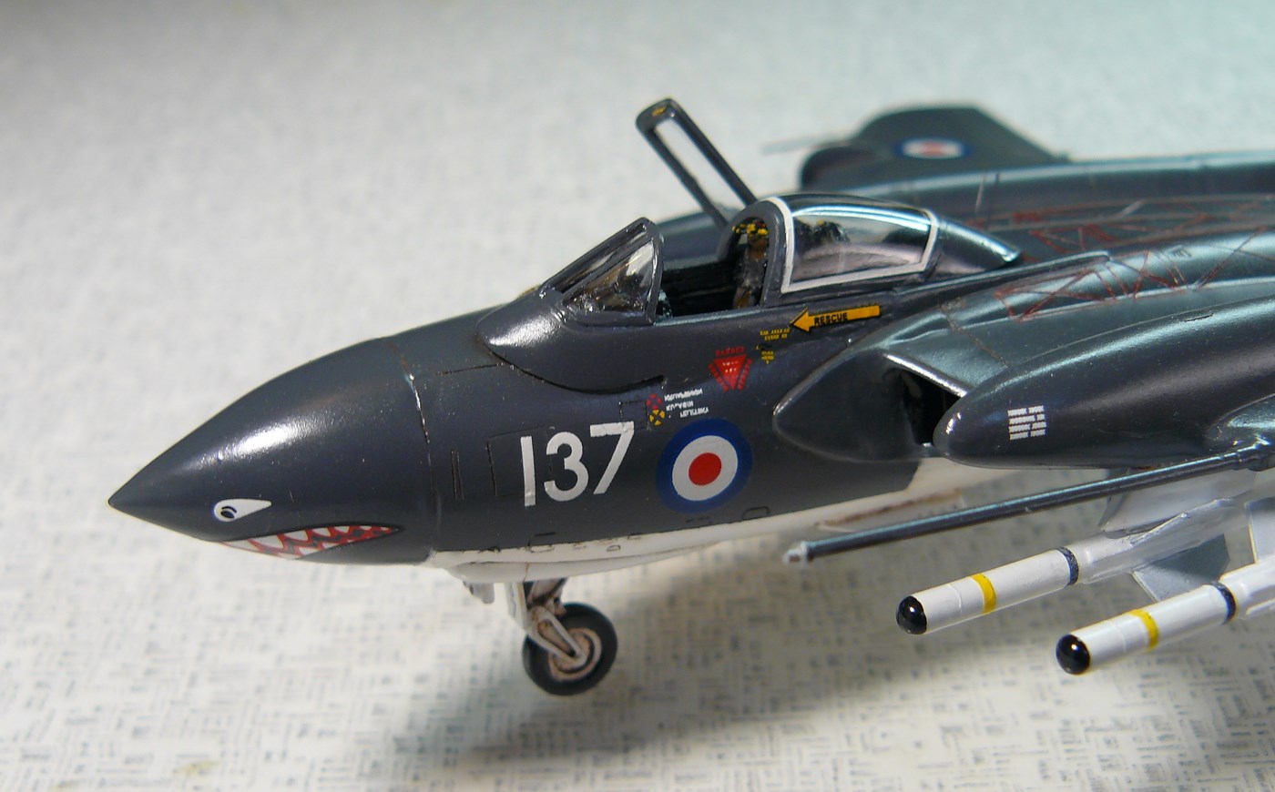 При сборке возникла идея сделать кокпит открытым, для чего был приобретен смоляной набор деталировки от "Pavla Models",для версии FAW.1 от "Драгон", пришлось немного повозиться с его подгонкой. Прорезан люк, разделен фонарь, который оказался толстым и кривым, чем изрядно портит вид.