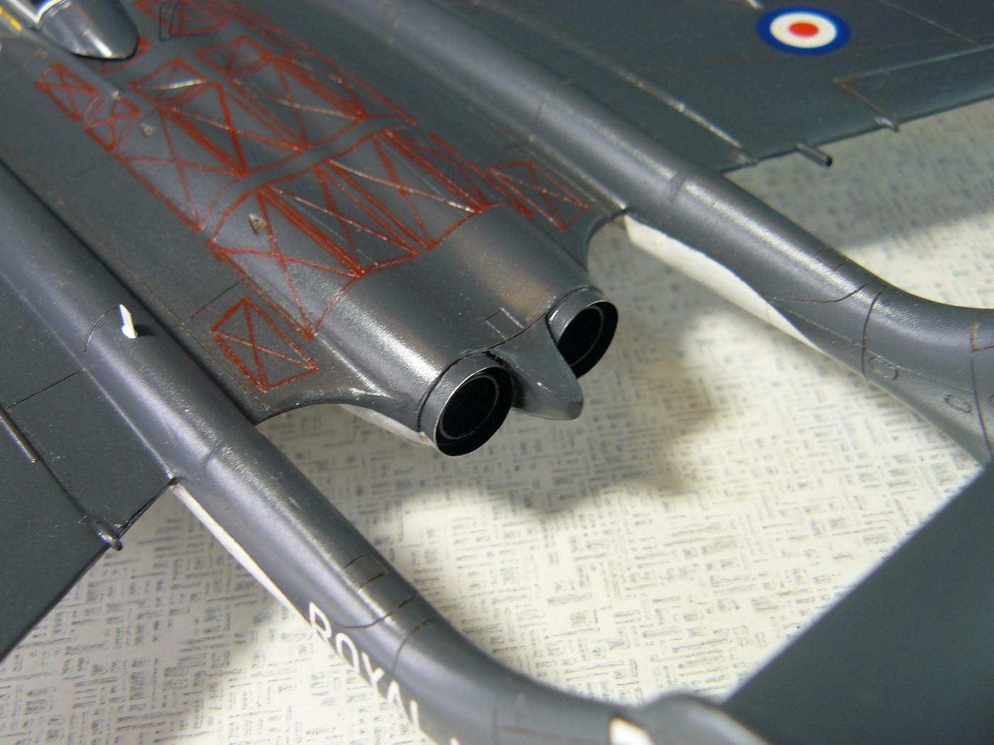 Верхняя и нижняя части фюзеляжа различались по ширине на 2 мм, пришлось изгибать в горячей воде и клеить под нагрузкой.