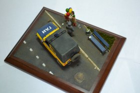 Первая моя работа с трумпом, и меня это знакомство приятно удивило. В диорамку вошел набор от мастер бокса, милиционер конверсия от icm (из набора Советской делегации).