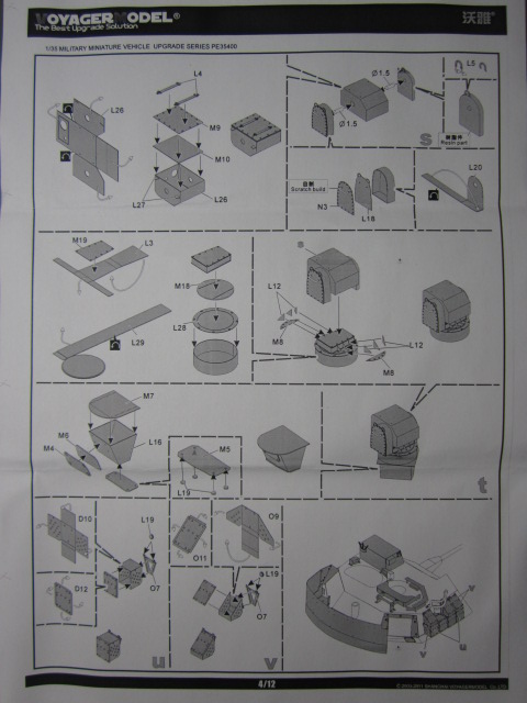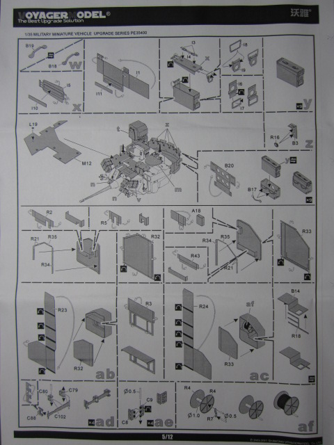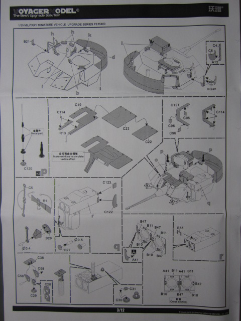 Платы фототравления выполнены из металла различной толщины, в зависимости от предназначения. Деталей и деталюшек... - пересчитывать не стал. Инструкция - подробная и достаточно понятная даже при беглом просмотре. Имеется возможность изготовления подвижными многих "открывающихся и шевелящихся" деталей на модели. Стекла тримплексов очерчены четкими черными контурами, имитирующих герметик вклейки стекол тримплексов. Каждый бортовой блок ДЗ имеет выштампованную, реально читаемую (правда, с помощью лупы :-)) надпись в 6 строк.