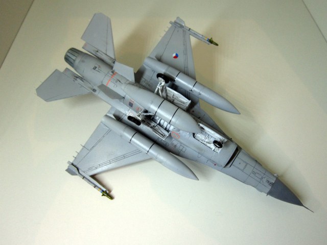 Известная модель от Revell. Литники двух цветов - светло и темно-серого. Видимо старая модель с добавленными новыми деталями. Качество литья прекрасное, облой и утяжины отсутствуют как класс. Стыкуемость так же на высоте. Шпаклевкой почти не пользовался. Декаль на 3 варианта - 2 голландских и 1 бельгийский. Техничка в обилии. Из афтермаркета добавил кресло ACES II от неомеги, колеса от Экипажа и ПВД с датчиками угла атаки от Master. Красил как всегда водорастворимым Аканом поверх тамиевской грунтовки из баллона. Смывка акварелью на фейри, тонировка тамиевскими "пудренницами", которые приборел по случаю и использовал в первый раз.