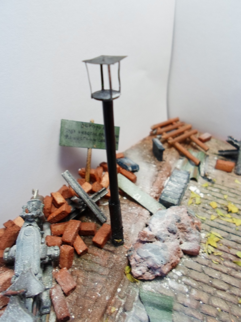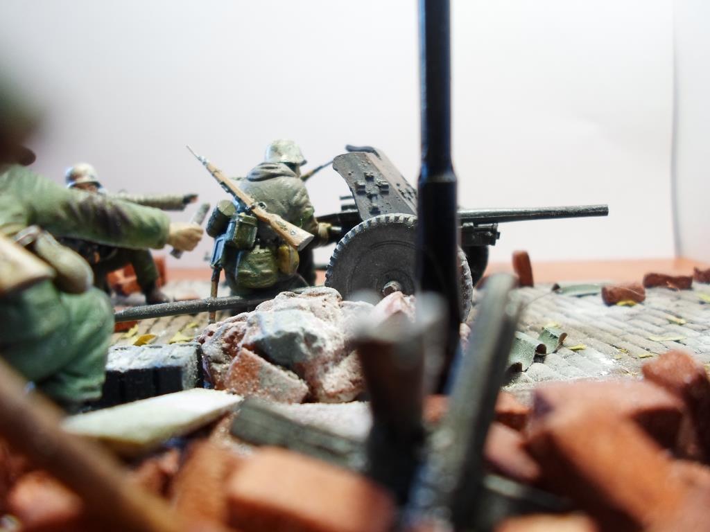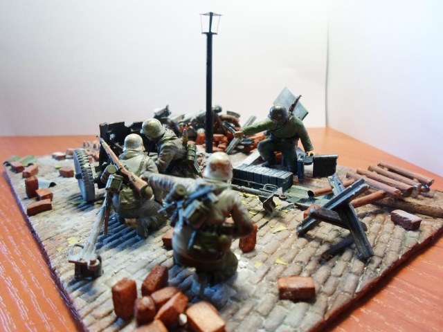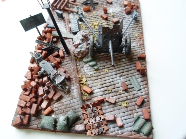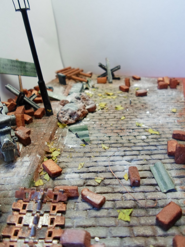 Чисто как то на вашей диораме. Посмотрите хронику, фотографии- там вы увидите взлохмаченную землю, кучу щебня и битого кирпича. Ровных поверхностей- очень мало.
