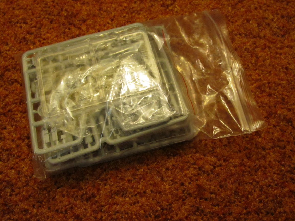 - Обычный целлофановый пакет с 5-ю маленькими очень толстыми литниками и одним литником остекления. (из остатка пластмассы можно как минимум ещё одну модель отлить! =) )