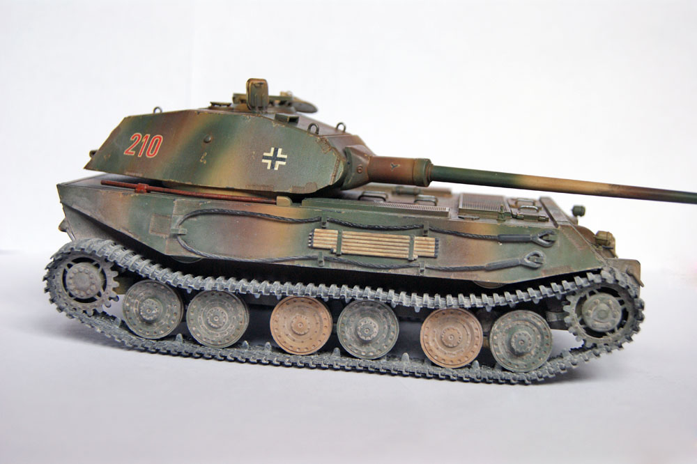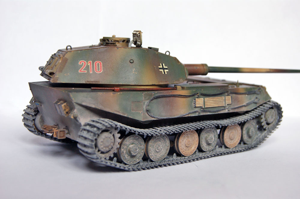 Доброго времени суток. Представляю на ваш суд модель он HobbyBoss VK 4502 (P). Сбора практически из коробки, из доработок проводка к фарам, сварные швы и триплексы из DVD. Красил аэрографом, краски АКАН, смывка Tamiya, масло сонет, пигменты Wilder. Из минусов данного набора являются траки, при склейке клеем Tamiya рассыпаются в руках. Любителям матчасти хочу сказать сразу, если есть какие-то придирки то будьте любезны показать мне фото и убедить что должно быть именно так, а не иначе. А так-как фото и чертежа (именно чертежа, а не наброска) нет, то и разговоры о матчасти считаю не уместными.