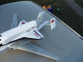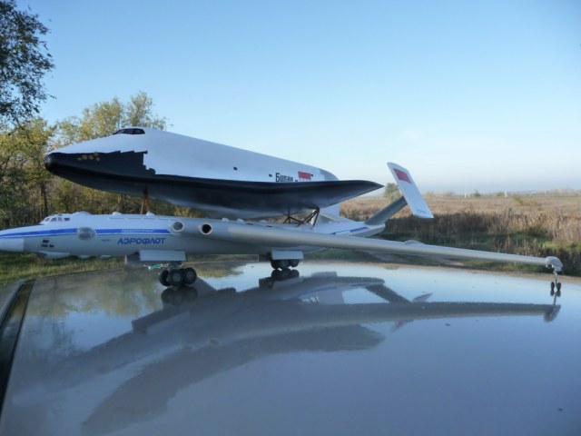 Всем привет! Строил 4 мес. Особенно невезучим ( прям до мистического неповиновения) был "Буран"- краску, да не то что краску, он даже грунт не хотел держать на себе, всё отваливалось, что называется "не отходя от кассы". - перекрашевал его раза три...... Амодел........каждый раз обещаю себе, что всё!!! больше ни каких амоделов....... и вот снова битва с ним, да ещё в таких размерах!!!! ( машина - Getz он на её крыше). Много что удивляет в моделе.. но особенно - как эти разработчики подразумевают соединение крыльев и корпуса???? если прнисоединить как задумано, то крылья смотрят вверх и не понятно, как и на чём он ( м-ка ) стоять должен....Обалдевал я всю постройку, каждый день и каждый час строительства. Но когда модель появляется и можно начинать её фотографировать, то ощущения не сравнить ни с каким строительством, ну, допустим, тамиевского ил-2 ( после амодела не понятно как это всё друг к другу подходит и состыкуется с первого раза ).