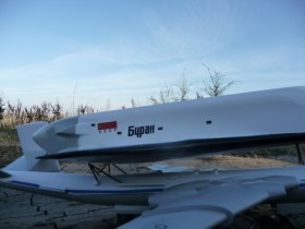 Ну что же, аккуратно собрано и столь же аккуратно окрашено. Да и вообще за сборку А-монстра - респект. Однако стоило бы выделить хотя бы рулевые поверхности. Ну и отсутствие кроя на "Буране" удручает, впрочем тут виноваты разработчики модели.