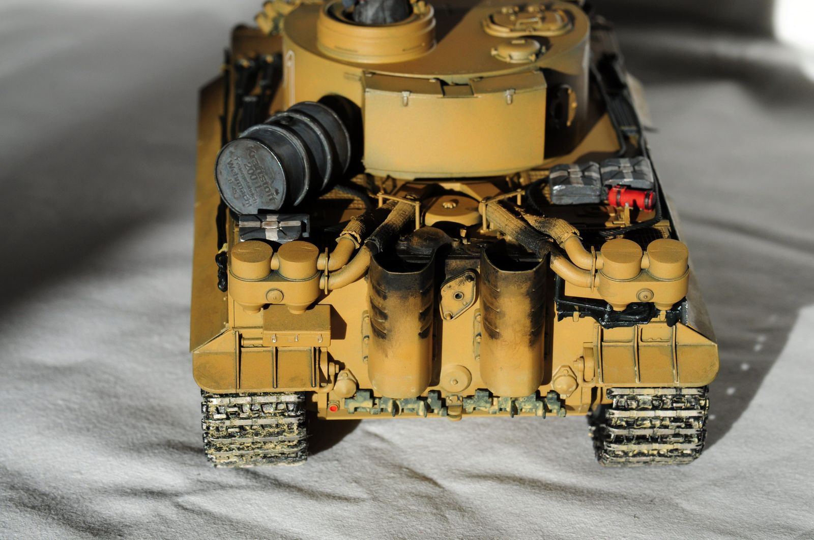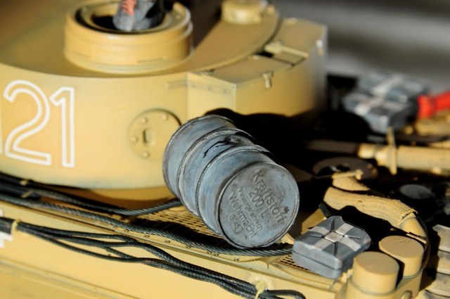 Именно огнетушители сильнее всего пострадали от технологий литья пластика. Даже в самых современных наборах Дракона мы видим какие-то обмылки, сильно отличающиеся от нижеприведенных фотографий. Для того, чтобы довести до нормального состояния огнетушители необходимо полностью сточить все с боковых поверхностей пластиковой детали и отрезать треугольный выступ на конце. То есть полностью удалить все элементы крепежа настоящего огнетушителя к танку. Этот крепеж очень ажурен и нормально его можно сделать только из травления. Самостоятельно придется сделать ручки, для этого подойдут обрезки травления и проволока. Немного об окраске огнетушителей. Те, которые находились внутри танка, были красные. Внешние до февраля 1945 красились в цвет танка, после темно-зеленые .