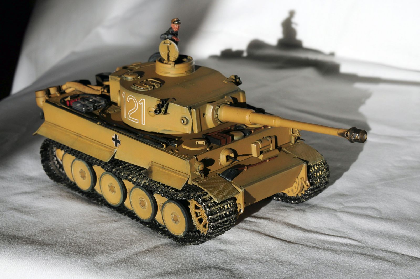 Модель почти полностью из коробки. Были заменены все тросы, добавлена бочка и канистры (долго думал, нужны они там или нет. в итоге положил, но не приклеил). Гусеницы железные, правда с ними вышел косяк, как в книге собрал по 96 трака в каждой, одел (без примерки), а они длинные. Окраска аэром, краска тамия,пигмент миг. Очень хотелось Африканца сделать не знаю получилось-ли,...