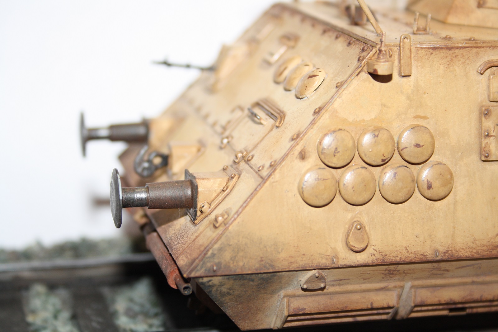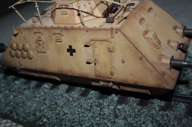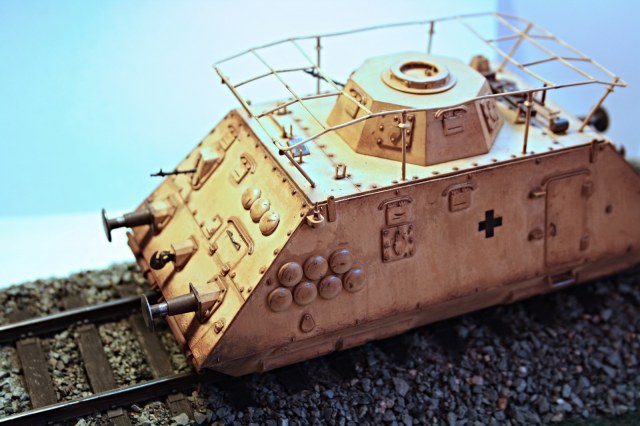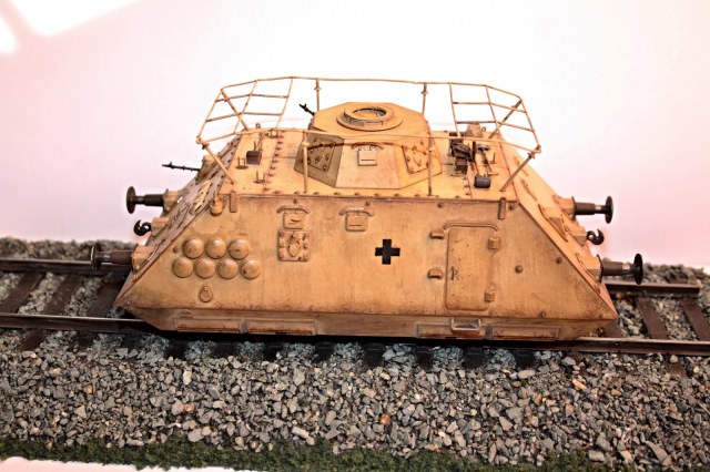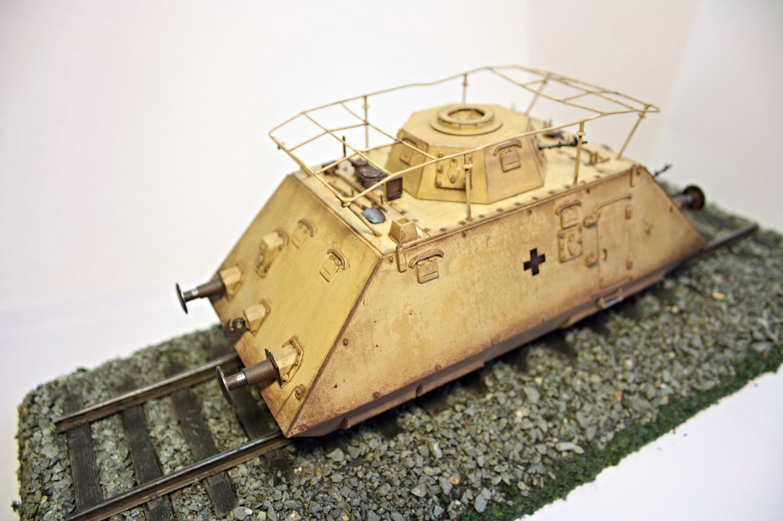 На ступеньки возле двери добавить накладки противоскольжения. Про перископы ком.башни думаю знаете. Потеряна часть шанца и укладка антенны, ровно как и она сама. Дрезине бы сцепочка не помешала, кстати, знаю что драгон не даёт, но всё-же.. Это кстати классная тема, фоткать её так что не видны пулемёты, но я чую они изкоробочные. Это не плохо само по себе, они смотрятся, НО только не вблизи. В идеале - менять на пехотные от Aber. Кстати, согласен что чуть вздёрнуты: в состояние покоя это правильно.
