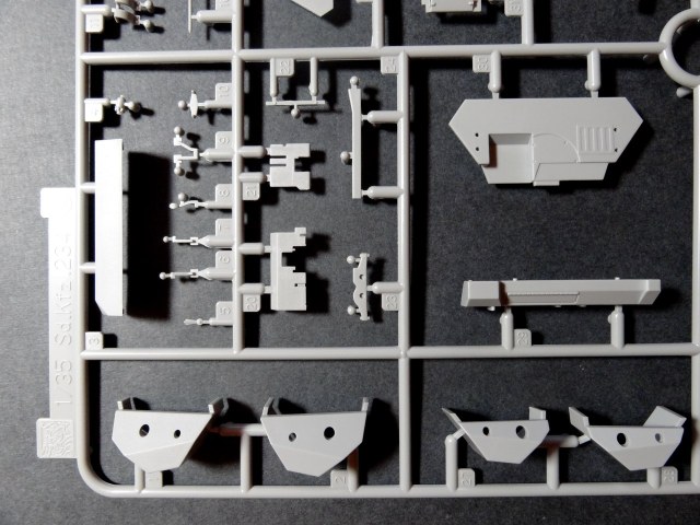 Когда впервые открываешь коробку, сталкиваешься с типичной дилеммой Dragon. "Как же это потом все засунуть обратно?" Комплект содержит 20 привычных по цвету серых литников, один прозрачный, отдельно верхний и нижний корпус, плата фототравления (а можно было и побольше…), лист с декалями и кусочками проволоки. Эта модель выпускалась ранее, под артикулом 6221, но теперь переиздан как «премиум» издание (но по факту даже металлического ствола нет…), который содержит ряд отличий. В этом комплекте все колеса могут регулироваться и есть возможность выбрать между двумя вариантами сборки колес.