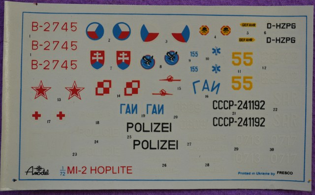 Пожалуй, что хорошее в этом наборе - это цена и втулка. Никаких подкосов держателей топливных баков как раз и нет. На ми-2 будет очень отдаленно похож (сам собирал в варианте ГАИ и выкладывал здесь фото модели). В конце уже сборки понял, что поляки обманули и в коробку положили не ми-2, а в-2 (предсерийный ми-2 1961 г., как раз это у него такая как в коробке форма мотогондолы, которая отличается от ми-2). Форма лобовых стекол неправильная, пол вставать на место не будет и близко, топливные баки не проработаны и т.д. и т.п. Вобщем попилить прийдется изрядно. А вот декаль мне понравилась и вариантами и к качеству не было никаких нареканий. Отсюда вывод: если хотите получить похожую модель на ми-2 - надо скрещивать Хобби Босс и это вот чудо.