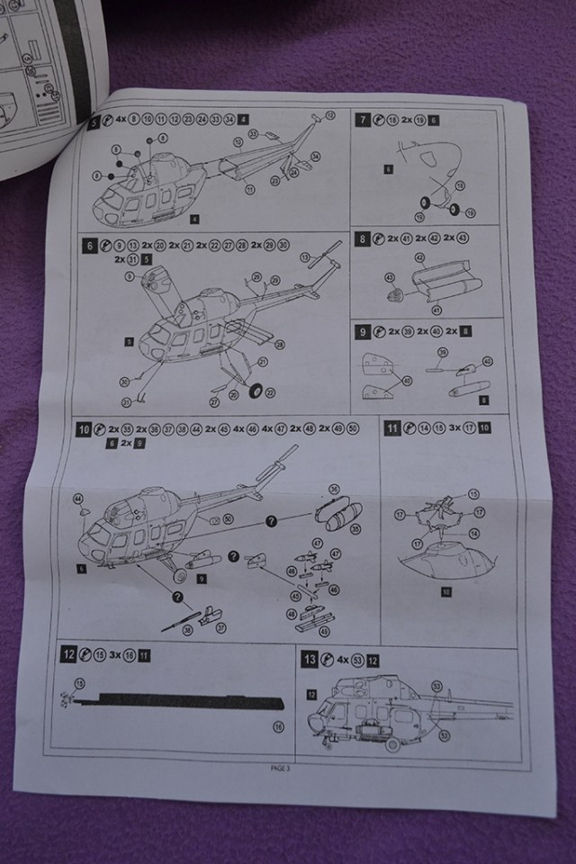 По сравнению с Ми-2 в 72-м от HobbyBoss, этот набор намного лучше, принимая во внимание правильную втулку несущего винта и наличие в наборе подкосов-держателей под внешние топливные баки.