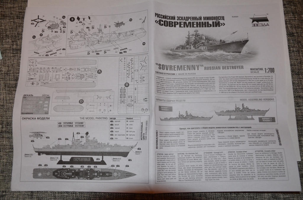 - насколько я понял, можно собрать эсминец только проекта 956, о каких-либо вариантах в инструкции ни слова;