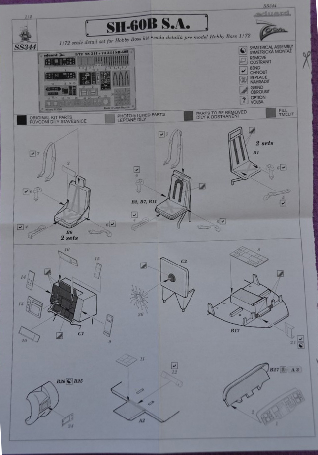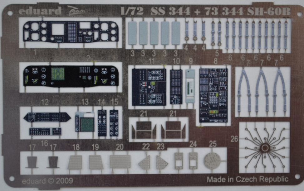 Представляю вашему вниманию Чешское травление для вертолёта SH-60B Seahawk в масштабе 1:72. Травление очень высокого качества + в цвете! Что очень радует. Это травление 1/2 часть от полного набора который состоит из двух пластин. Вот ссылка на полный.
