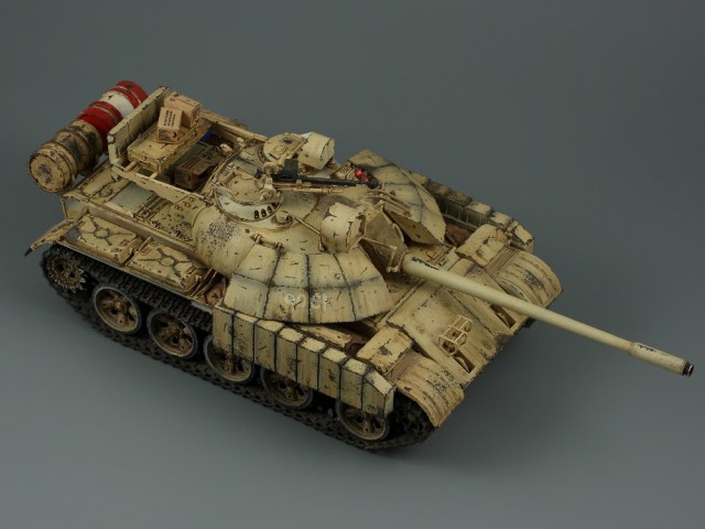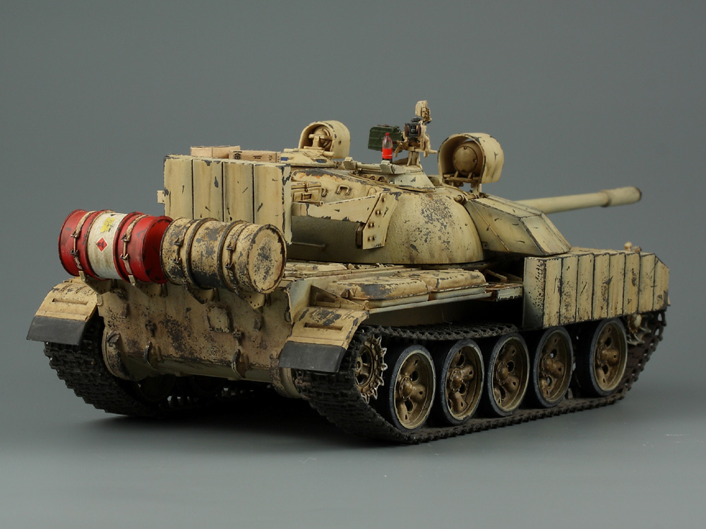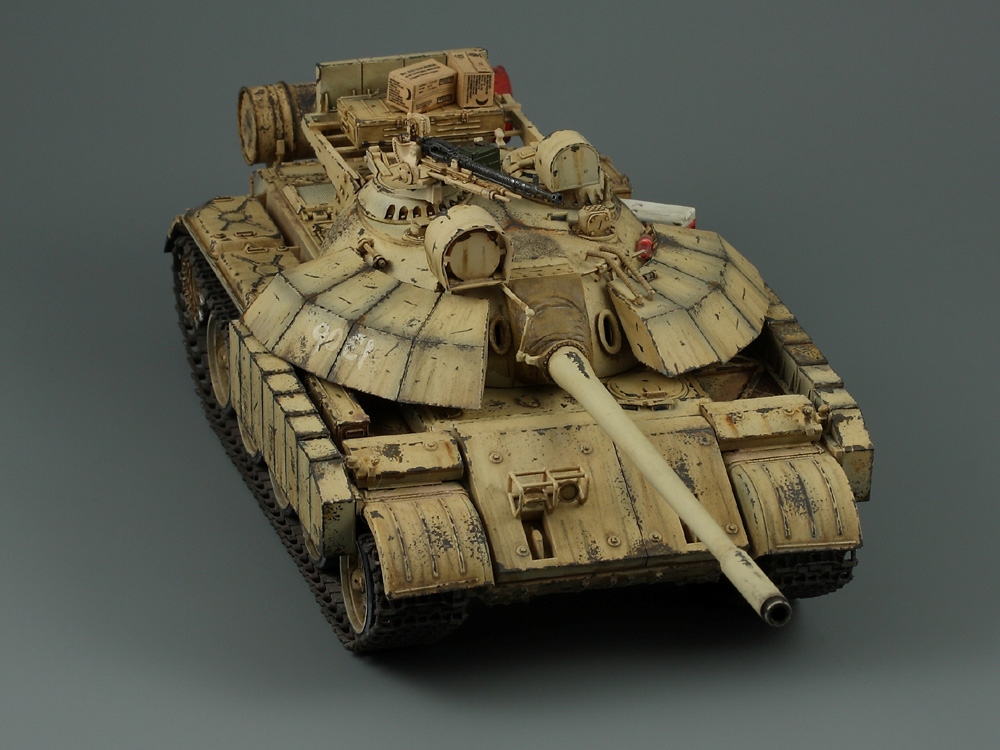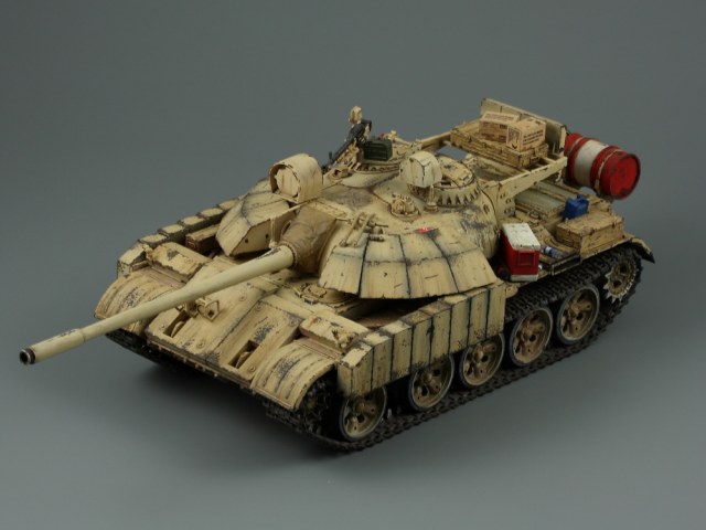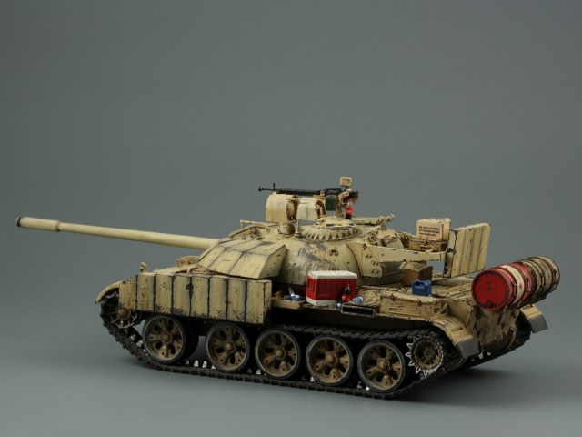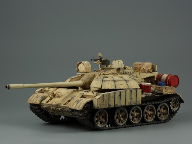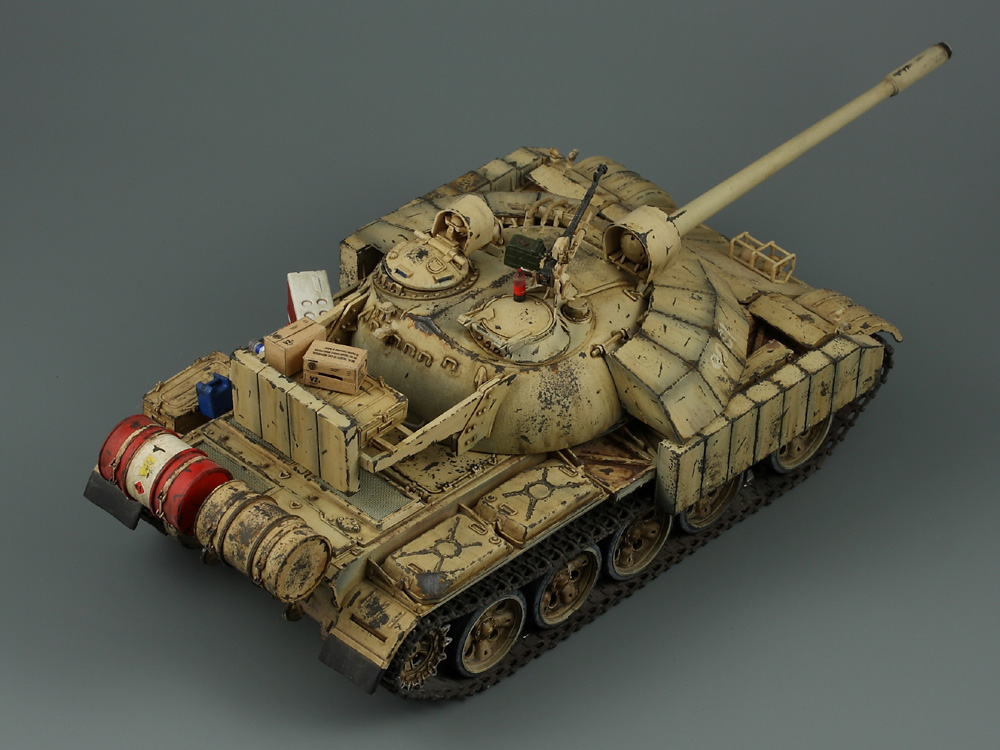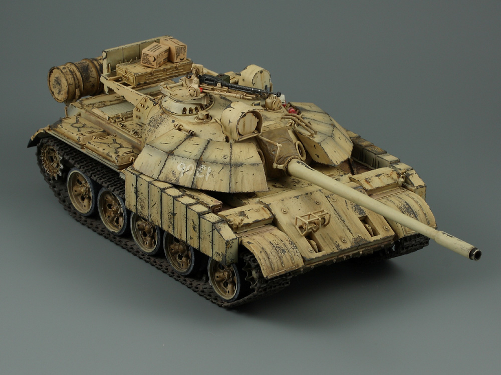 Т-55 Энигма (Тамия). Модель собиралась стихийно, плюс была первым опытом в современном БТТ. Под конкретно существовавшую машину не подгонял, решил дать волю своей фантазии. Модель собрана практически изкоробки, добавлены только траки Friul и ствол от RB models. Собственно по сборке писать больше нечего, перейдем к окрасу. Прешейдинг изначально планировался не столь агрессивным, но возможно из за разных красок (прешейд тамия акрил, база ганза нитро) а возможно из за тамиевского акрилового лака он получился ну очень злым. База мешалась из трех цветов по фотографиям музейного экспоната с поправкой на халатность музейных маляров и выгорание в полевых условиях. В тонировке принимали участие: подтеки для натовской техники, "мокрый" эффект, темные подтеки, ржавчина, и африканская пыль вперемешку с дорожной от АК interactive. Все остальное дорисовывал маслом от разных производителей.