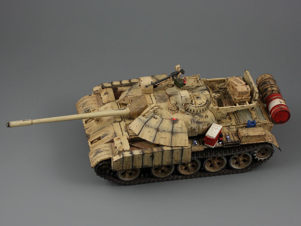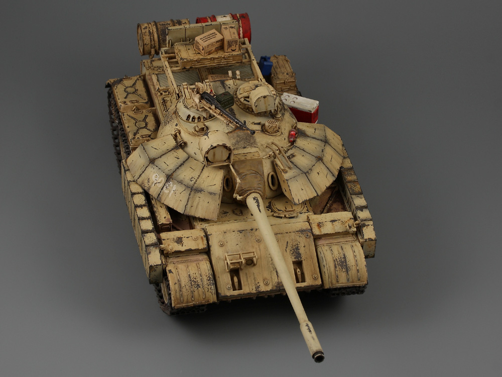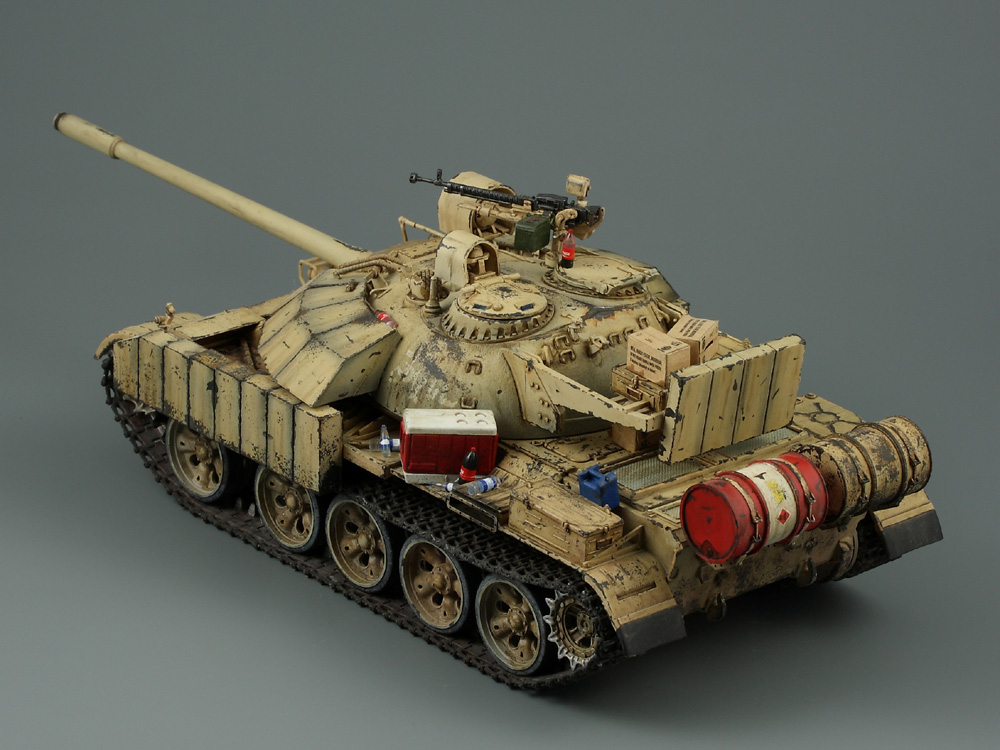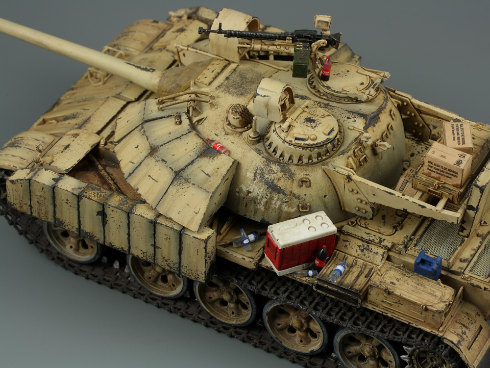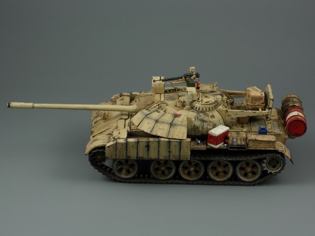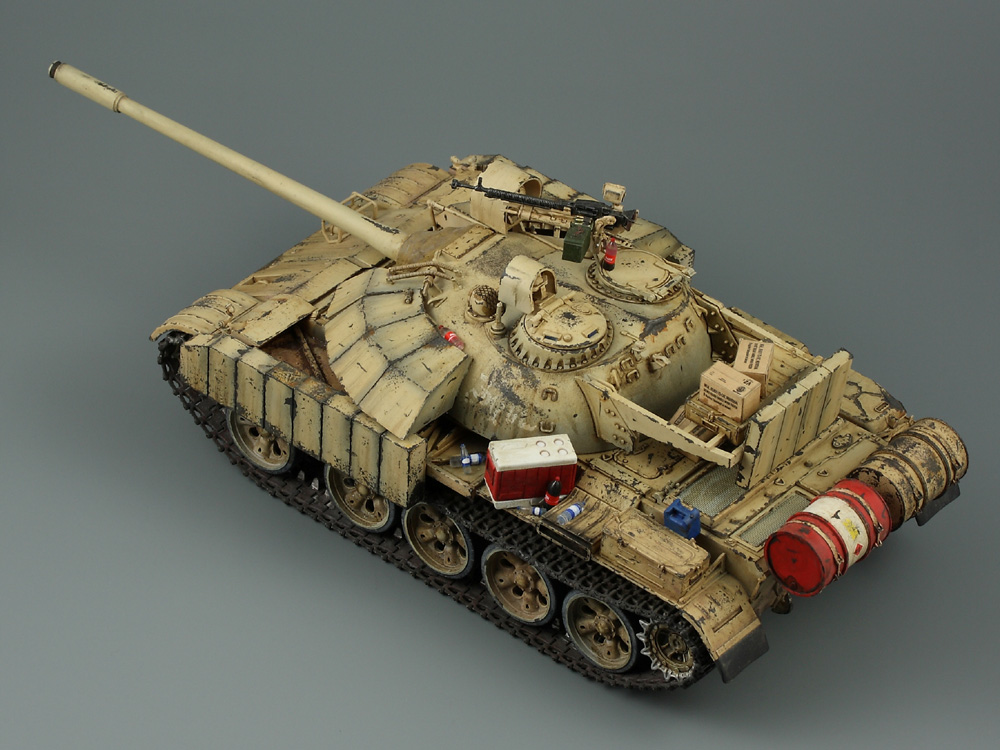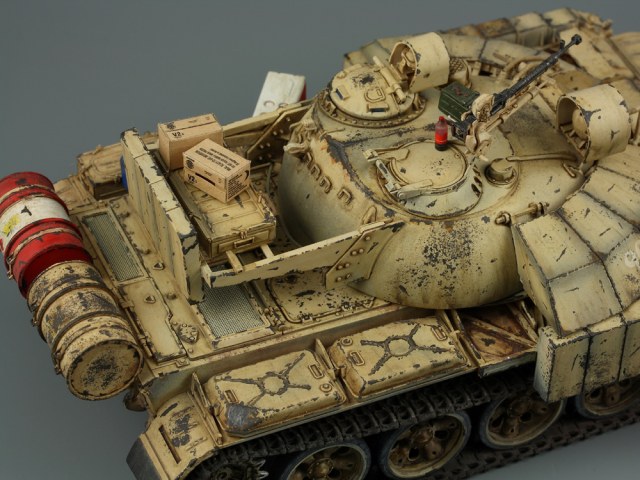 Т-55 Энигма (Тамия). Модель собиралась стихийно, плюс была первым опытом в современном БТТ. Под конкретно существовавшую машину не подгонял, решил дать волю своей фантазии. Модель собрана практически изкоробки, добавлены только траки Friul и ствол от RB models. Собственно по сборке писать больше нечего, перейдем к окрасу. Прешейдинг изначально планировался не столь агрессивным, но возможно из за разных красок (прешейд тамия акрил, база ганза нитро) а возможно из за тамиевского акрилового лака он получился ну очень злым. База мешалась из трех цветов по фотографиям музейного экспоната с поправкой на халатность музейных маляров и выгорание в полевых условиях. В тонировке принимали участие: подтеки для натовской техники, "мокрый" эффект, темные подтеки, ржавчина, и африканская пыль вперемешку с дорожной от АК interactive. Все остальное дорисовывал маслом от разных производителей.