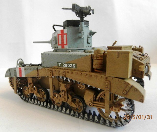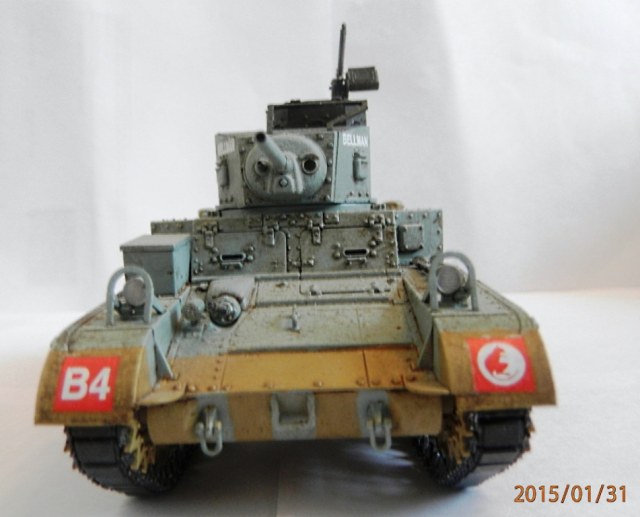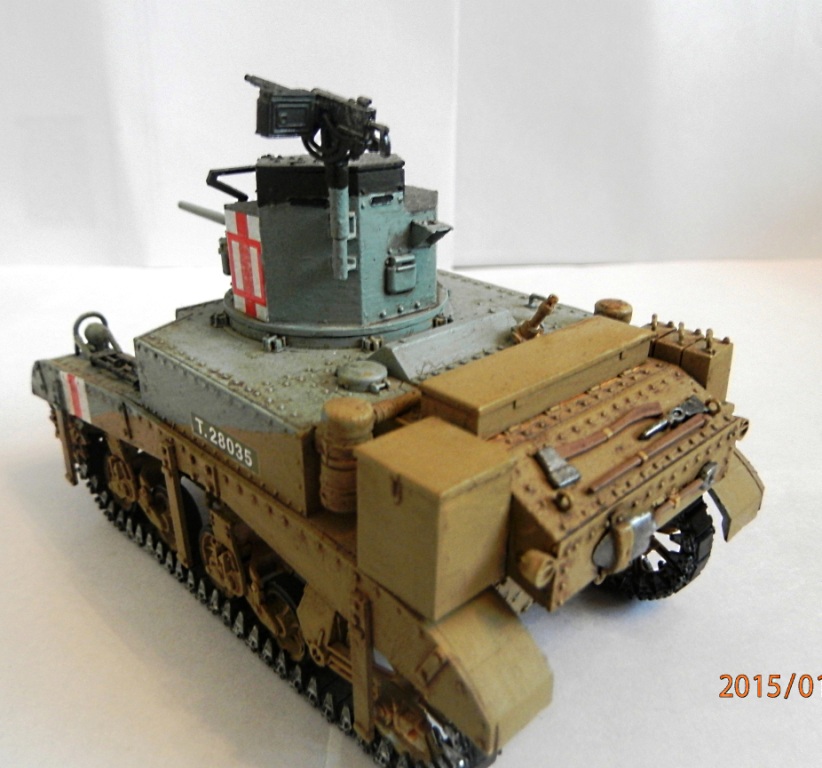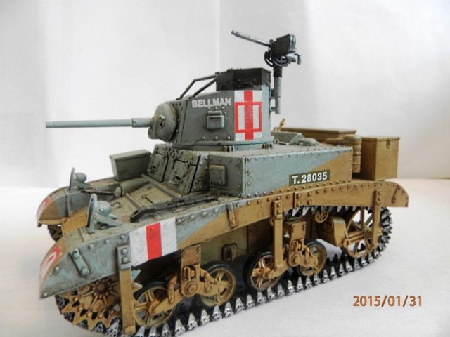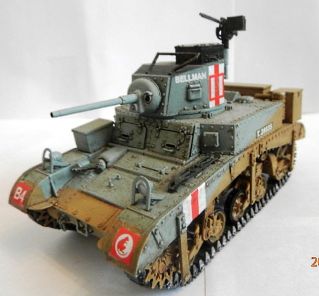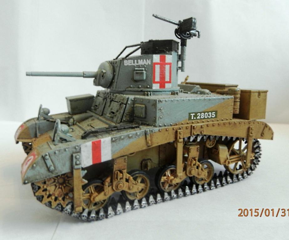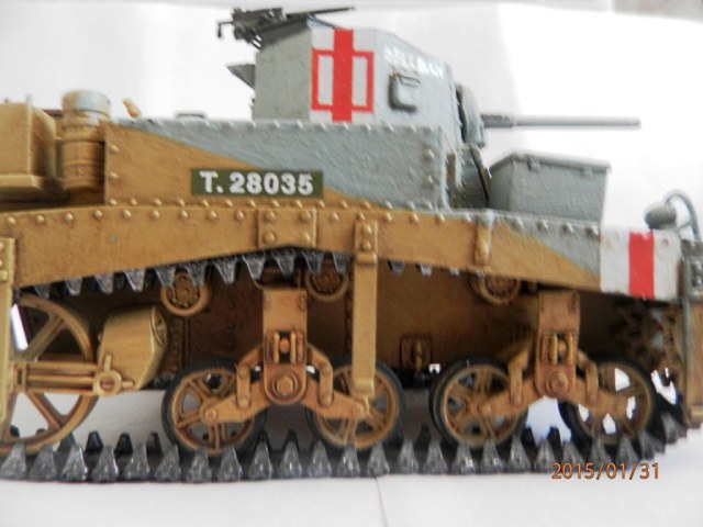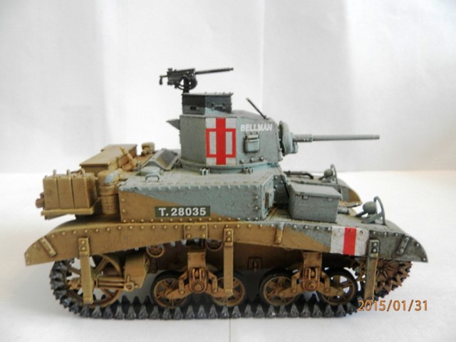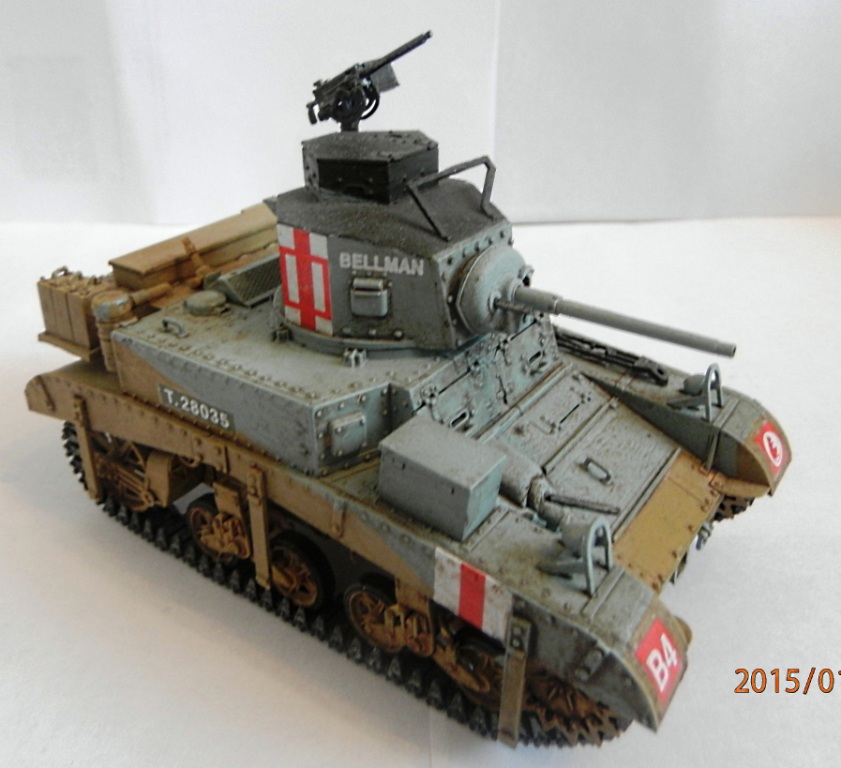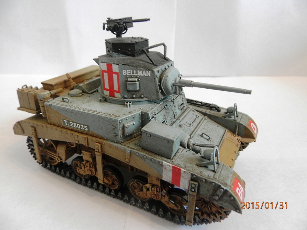 уважаемый,если вы беретесь делать конкретную,таки сказать "именную модель" типа BELLMAN то просто ориентируйтесь на фото а не руководство от солидной АКАДЕМИ. ну типа номерок Т28037 и к примеру расположение "заглушек" курсовых пулеметов.Так же если мне не изменяет память-на крыше МТО производитель дает не верное расположение камуфляжа.На ранних стадиях Африканской компании англичане применяли весьма своеобразный камуфляж, состоящий из тройной комбинации полей темно-земляного, сине-серого (Light Blue-gray) и песочного (Dеsert Yellow) цветов сходящихся в одну точку в кормовой части машины. Поля имели чёткие границы и наносились в строго установленном порядке по отношению к продольной оси машины вниз от точки схождения.Не подумайте что это попытка поумничать. просто дружеская подсказка.С уваж. О.