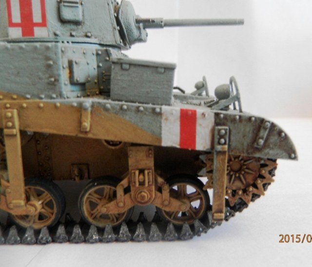 Полностью искоробочный "Стюарт", окрашенный кистью акриловыми красками Tamiya.