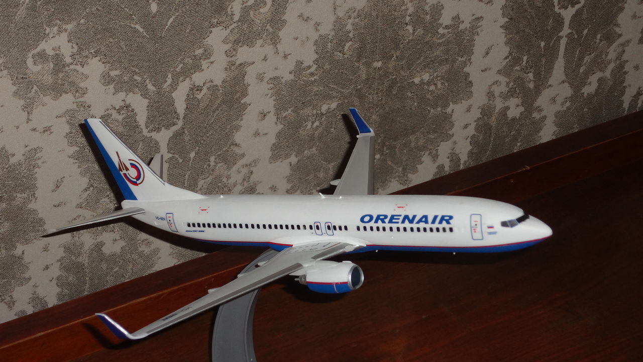 Представляю Боинг 737 800 от ревелл, описывать сборку думаю смысла нет, сделал в ливрее Orenair, в данном случае- борт на котором довелось летать в Барселону и обратно в мае месяце впечатления от полета остались не самые приятные. Красил кисточками, акриловыми красками Ревелл, акан и звезда, декаль использовал базовую- Ascensio, разделительная красная полоса- от изкоробочной деки Air Berlin, пришлось взять ее оттуда, тк граница цветов получилось местами не совсем ровной, кое какие элементы заказные.