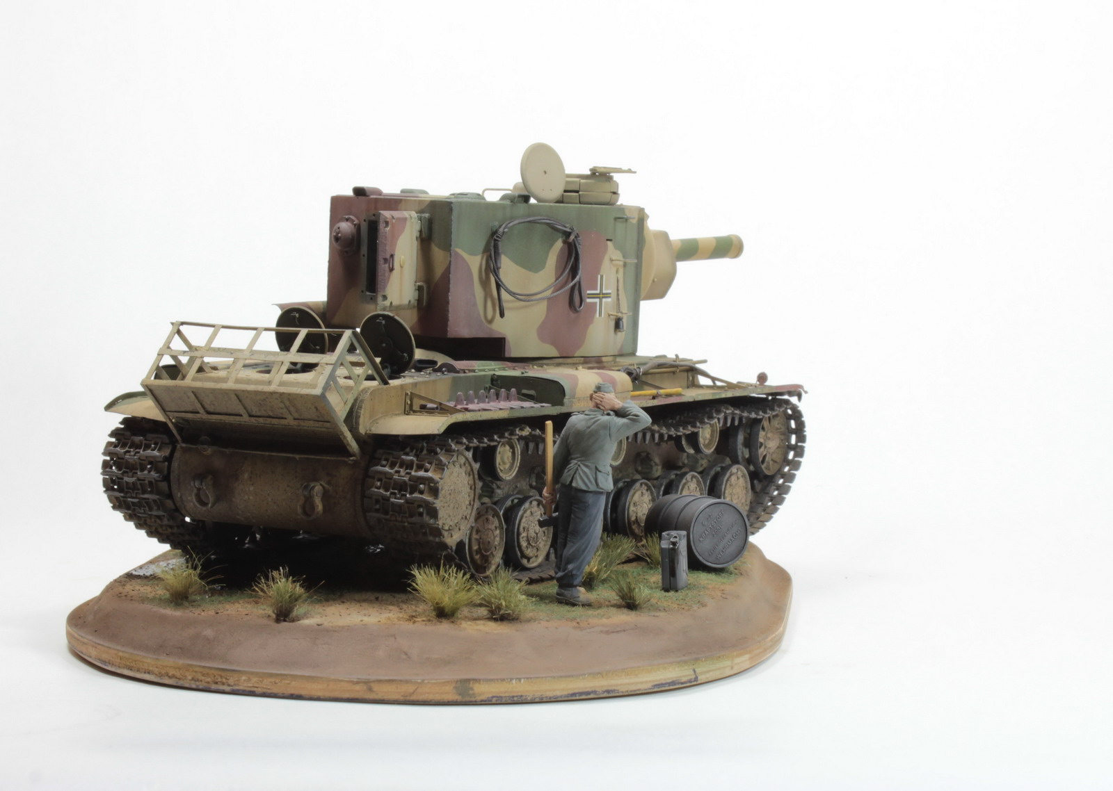 Сюжет, однако! Немец, чешущий затылок и с кувалдой в руках - очень к месту возле КВ-2! За "нутро" - отдельный респект. Откуда трансмиссия?