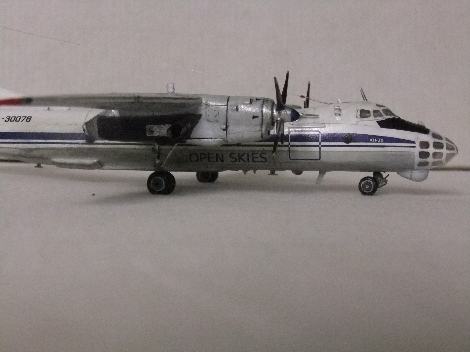 Жень, без обид,но лучше начать заново и в 72 масштабе.Вместо краски, если нет аэрографа, можно купить грунт белого и светло серого цветов в баллонах от Тамии-очень быстро сохнет и обладает хорошей укрывистостью. Удачи в дальнейших работах!