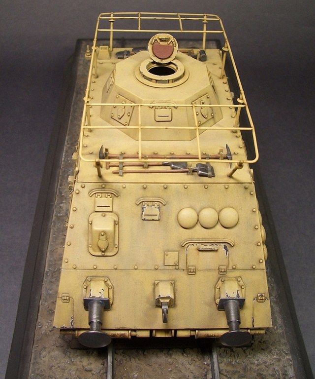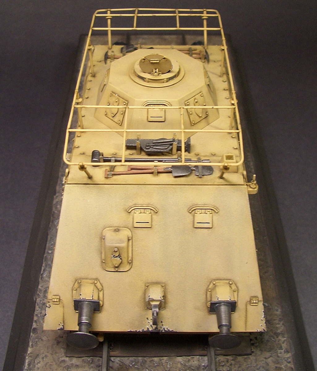 Кит довольно старый, но не сложный и приятный в сборке. Можно собрать два варианта - командный или пехотный (я выбрал командный). Информации о прототипе нашлось не много, по этому привязки к конкретной машине я не делал...локация из инструкции - Балканы 1944год. Афтер не использовал, собирал как есть - "из коробки", от себя добавил лишь ремешки на шанцевый инструмент, скобы/ручки из проволоки, немного доработал домкрат с помощью аберовского травла. Перископы сделал по своему методу - из фоторецептора от принтера. Окрашивалась модель тмийскими и акановскими акриловыми красками, так же использовались фильтры и пигменты миг, различные жидкости АК. Кресты "надуты" через трафарет. Ж/д полотно - трумпетер.