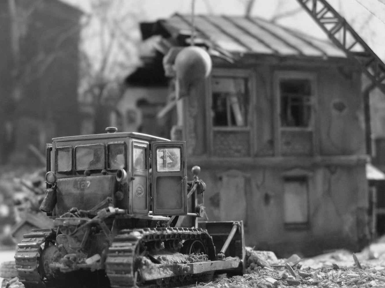 С начала 60-х по начало 70-х началось массовое строительство по расширению центра города. Многие дома, в основном дореволюционной постройки были снесены целыми кварталами. Народ был расселен по всяким Черемушкам, а на месте их старых домов построили широкие проспекты. Вот по мотивам и сделал диораму.