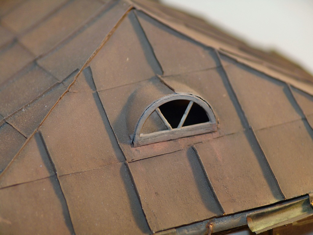 По трубам (наверное все таки водосточным, а не водопроводным) все достаточно просто. Во дворе померил высоту и диаметр трубы на доме, перевел в 35-й. Потом по размерам из пивжести нарезал прямоугольники. Затем подобрал по диаметру стальную трубку (можно в принципе любой предмет, главное что бы круглый стержень) и вокруг обернул жесть. Стык должен быть внахлест, куда капнул циакрином. Собственно все )