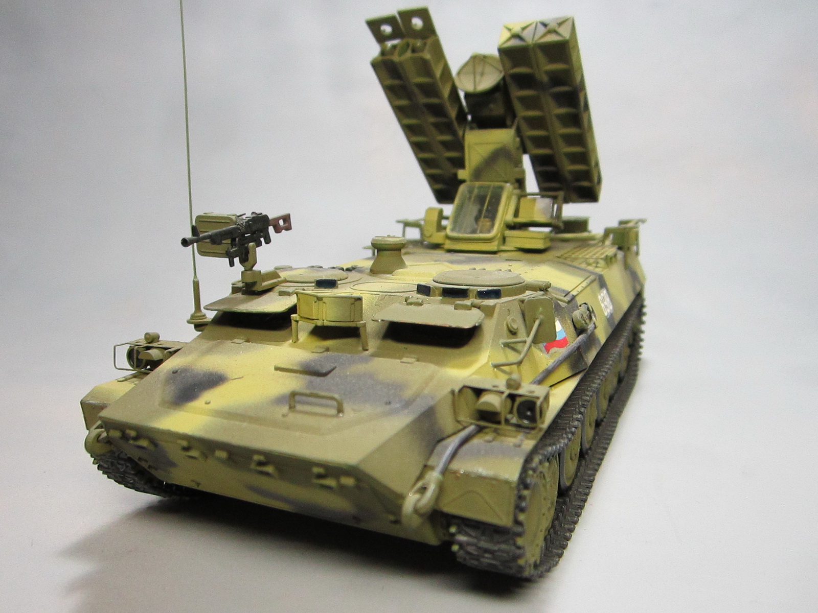 "модная" в свое время модель. Вставлено стекло в кабину оператора и сам оператор. Сама пусковая вращается и раскладывается в транспортное положение. Все, что должно открываться - открывается. Имеется кое-какая нуктрянка (все из коробки).