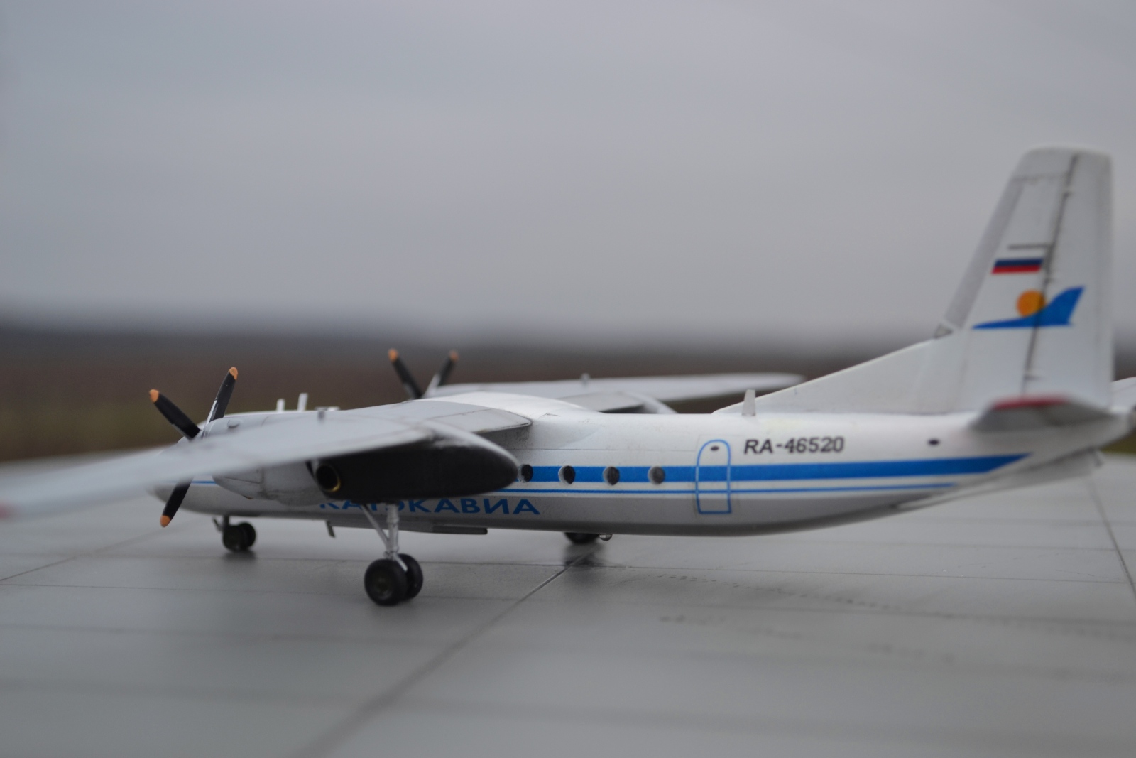 Выкладываю свеженькую модель самолета Ан-24рв от Восточного экспресса Сборка проблем не доставила. Немного изменил носовую часть, добавил БАНО, посадочные фары Эльф, сопло РУ-19, патрубки выхлопа двигателей, антенны из обрезков травленки, декаль Aerodeka.