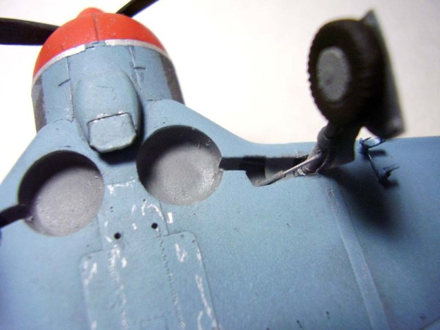 Стойки шасси и механизм для выпуска шасси изготовил из игл от шприцов, створки ниш из алюминиевой ленты. Сами ниши тоже пришлось переделывать. Для этого использовал упаковки из под таблеток.