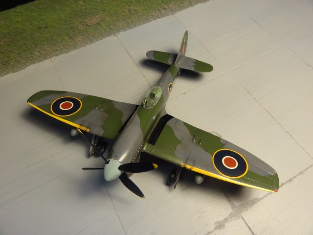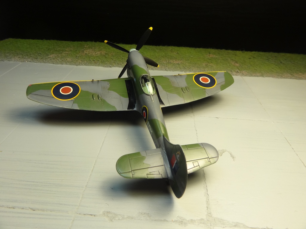 Выглядит отлично. Заметил несколько недостатков - серебрение декали со значками побед , ОЗ , пусть переразмеренные , стоило прорезать по элеронам. Зелёный цвет действительно выглядит не Dark green , а больше похож на slate green.