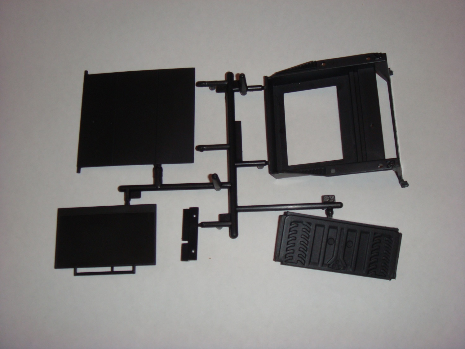 Цельная деталь из черного пластика, качеством чуть ниже. Соединяется с корпусом винтами.