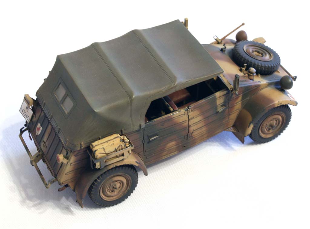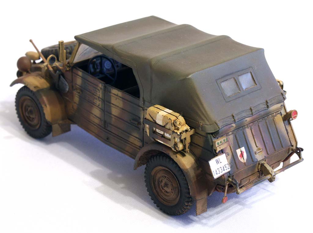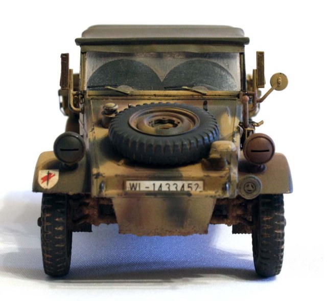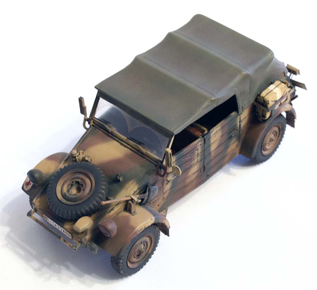 Честно говоря, это один из тех случаев, когда какие-либо слова излишни. Более 50000 единиц машин такого типа было произведено Германией до конца войны: этим мне кажется, всё сказано. Максимально упрощённый угловатый корпус, собранный из жестяных листов с выштамповками для усиления, двигатель поздней версии мощностью всего 25 л.с., колёсная формула 4x2 (что интересно – машина не страдала низкой проходимостью) и складная брезентовая крыша для защиты от непогоды, складывающееся вперёд ветровое стекло да «лоханкообразные» сиденья Kübelsitz, давшие «имя» целой серии, в независимости от их наличия или отсутствия – вот и вся машина. Впрочем, в моей версии сиденья уже не «лоханки», только вот прозвище за машинами закрепилось прочно.