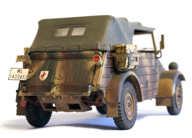 Ну вот, спустя почти 2 года лежания в коробке в полусобранном виде, модель, что называется, обрела жизнь. Я не берусь давать рекомендаций или советов, только скажу: это простая и приятная в сборке модель, классно выглядящая как собранная просто из коробки, так и со всевозможными доработками и дополнениями. С ней можно как проявить фантазию и создать машину по своему вкусу, как и строго следуя имеющимся фото, сделать копию реального прототипа. Каков будет Ваш «кубельваген» - зависит только от Вас, а мой - перед Вами.