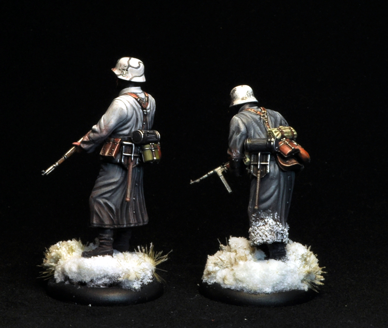 На самом деле, начиная красить модель (первую из этих двух, а это был автоматчик), помнил, что воротничок у второй модели должен быть серым, но когда фактически начал красить вторую модель, то увлекся и данный воротничок у меня стал не частью шинели, а частью поддевки.