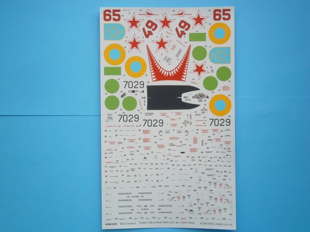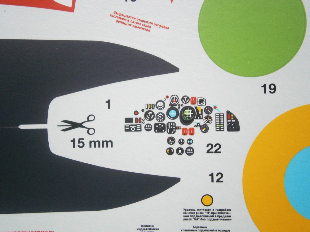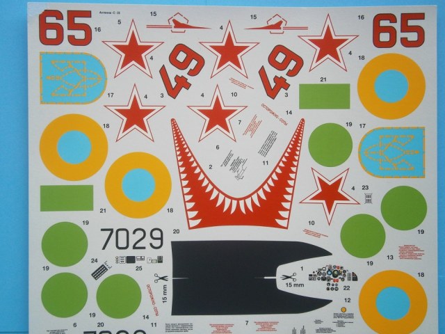 Деколь из набора не плохого качества, дана на одном листе. Производитель предлагает выполнить на выбор три варианта модели самолета: