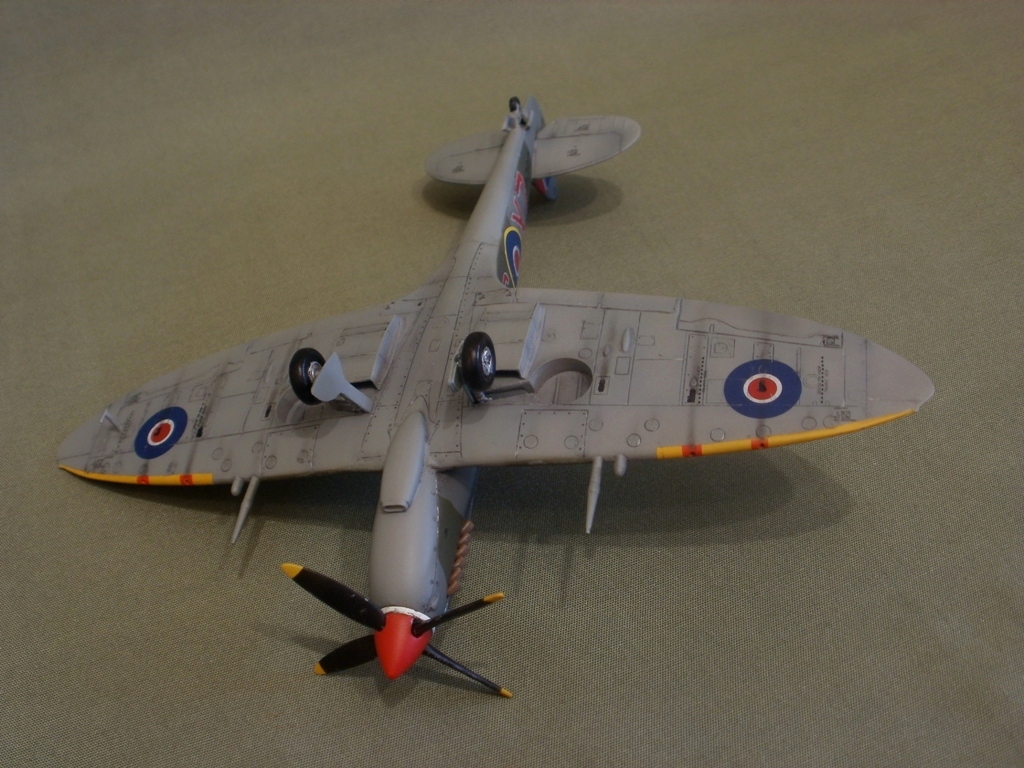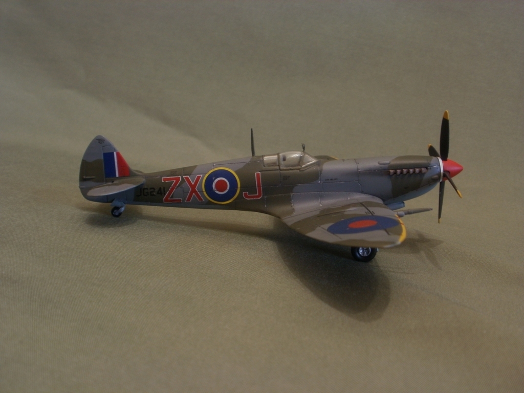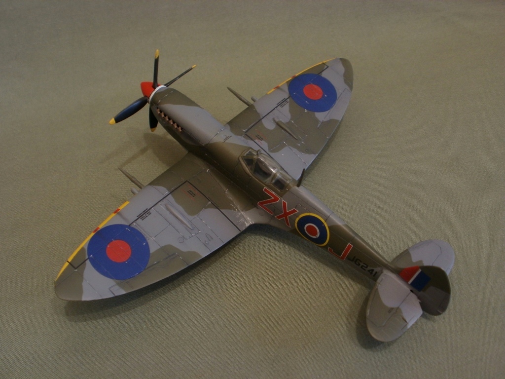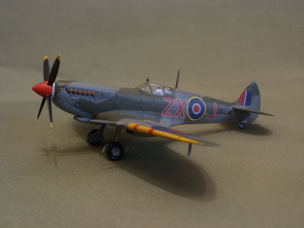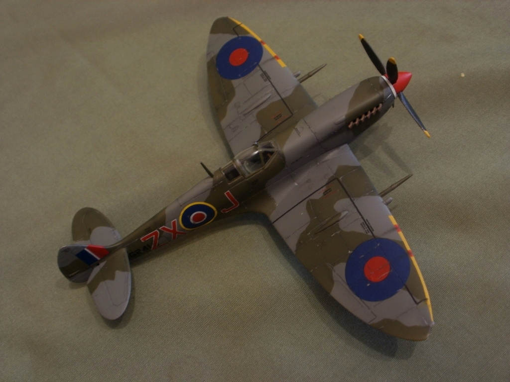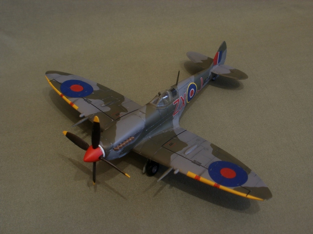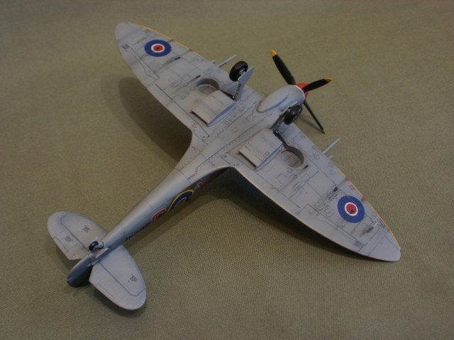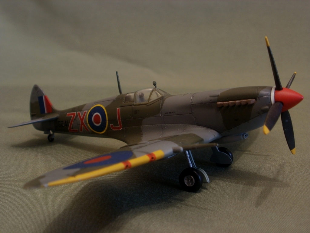 Представляю свою очередную работу - Supermarine Spitfire Mk.VIII от AZ-model. Модель изготовлена по технологии литья под низким давлением. Пластик неплохой, однако вся поверхность довольно жирная и сильно шероховатая. Потребовалась шлифовка. Общая детализация, на мой взгляд не уступает Тамии. Стыкуемость средняя, нужно некоторое количество шпаклевки. Модель была загрунтована Mr. Surfacer'ом и окрашена красками Gunze (специальный набор для ВВС Великобритании). Преред нанесением декалей, нанес слой Футуры. Расшивку выделял с помощью самодельной смывки из художественной пастели, воды и моющего средства, после чего модель была задута полуматовым лаком Valejo. Копоть нанесена сухой кистью, используя художественную пастель.