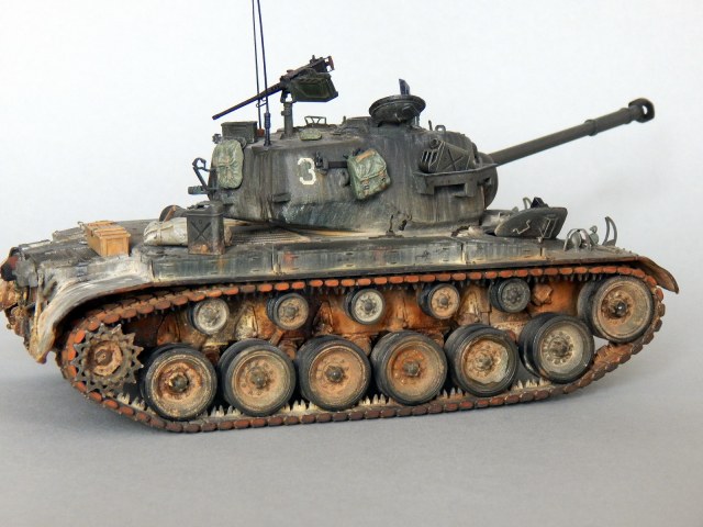 Наконец закончил постройку модели и вот что получилось. За прототип был выбран M26A1 Pershing боевые действия в Южной Корее, 1953 год.