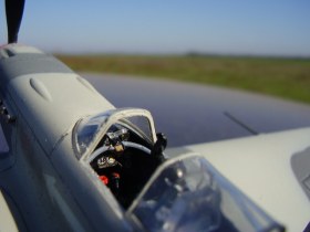 Очень, очень не плохая модель! Винт слишком ярко черный, лучше бы покрасить в темно-серый, или "притушить" сухой кистью. Для таких округлых форм, как кок лучше использовать в качестве маски, напрмер, пластилин. На месте крепления трубки ПВД как-то неудачно у Вас получилось.