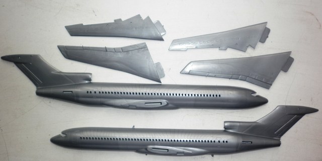 Это известный в 70е-80е годы , да летающий и сейчас Боинг 727-200 ( укороченный вариант этой машины 727-100 в 100м масштабе выпускал в своё время VEB Plasticart).