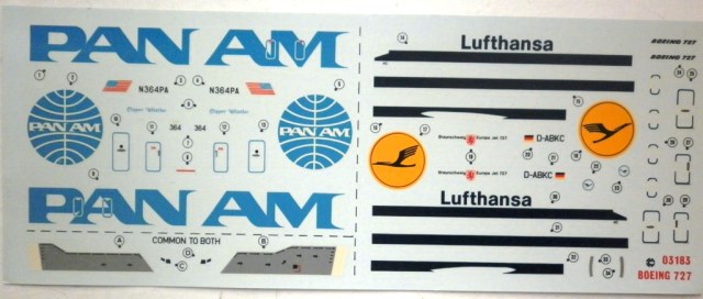 Очень красивая и удобная коробка с верхним доступом. Выпускаются несколько разновидностей оформления модели . Мне досталась модель , позволяющая собрать либо модель американской компании PAN AM , либо германской Lufthansa.