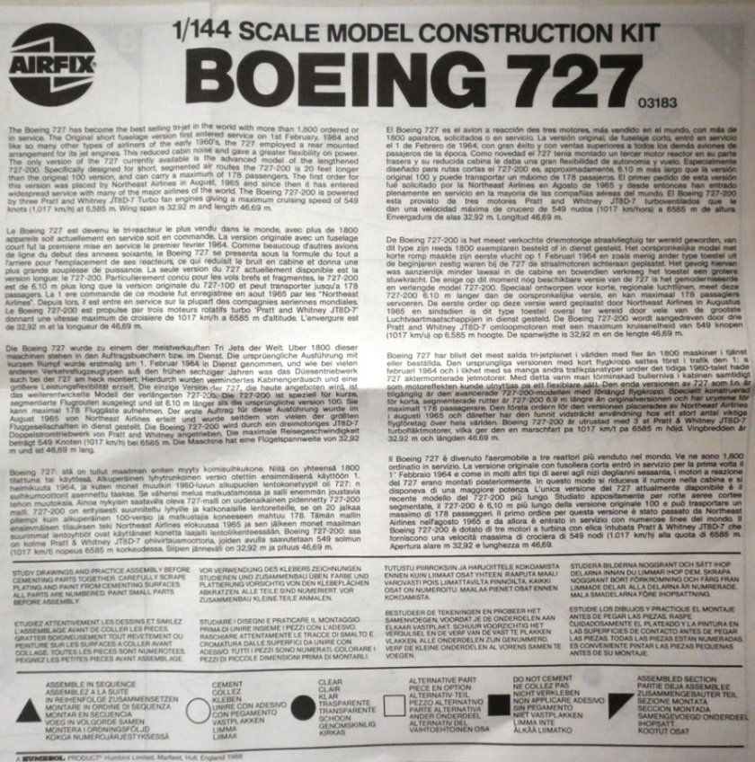 Если быть более точным, то данная модель разработана еще в 1965 году, тогда она назвалась просто Boeing 727. В 1984 году переиздана уже как Boeing 727-200 в ливрее Iberia. Ваш экземпляр, судя по дизайну коробки, выпущен уже в этом веке, может быть в конце 90-х.