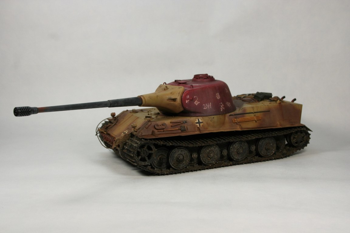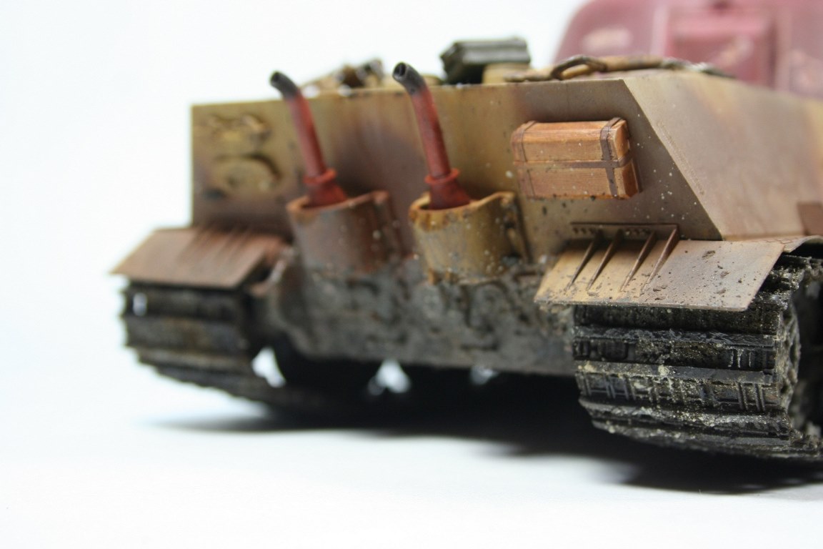 Судя по тому что корпус выглядит весьма потрёпанным, даже скажем так-сильно потрёпанным(я так вижу)судя по грязи и ржавчине вами изображённой-на корпусе и маске,а отсутствие блеска на траках, катках и звезде машина простояла без движения как минимум месяц...а вот башня получается только установленной...вам не кажется в этом есть какая то не стыковка? здесь либо башню покрасить и состарить,либо ходовую помыть...либо весь танк оставить в грунте....как и башню....а то получается танк с маской старые а башня новая...бред, если дейсво на заводе, после установки новой башни в последствие её не обратимого повреждения...по любому машина будет чистой...если по отдельности,как покрашен корпус и маска мне нравится, как покрашена башня тоже, как покрашена ходовая тоже нравится с учётом если имелась ввиду брошенная машина, простоявшая без движения как минимум месяц....