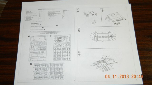 Модель упакована в картонную коробку, литники в одном пакетике. Качество неизменно с присутствием наверное уже фирменного брака, а может это для того, что бы не расслаблялись моделисты. Инструкция все также скромна, на одном листе. Гусеницы кажется уже где то встречал, не могу вспомнить у какого производителя. Хотя, что я хочу за 100 с копейками рублей? Короче, моё любопытство думаю кому то послужит. С уважением, друзья!