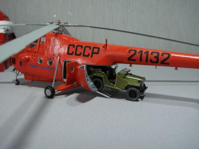 Так уж получилось, что сперва я купил Ми-4 от Trumpeter, а потом уже нашел Газ-67б от Колибри. Я знал, что Ми-4 разрабатывали в том числе и для перевозки Газ-67, поэтому сделал створки грузовой кабины заранее открытыми и добавил трап в надежде найти сам Газ-67 в 72-м масштабе. И вот я его нашел! Производители не подвели, внутренний размер грузовой кабины вертолета, да и габаритные размеры самого фаэтона попали в чертежи, поэтому он там так хорошо «сидит» как положено с расстоянием от борта фаэтона до стенки грузовой кабины в 2 мм.