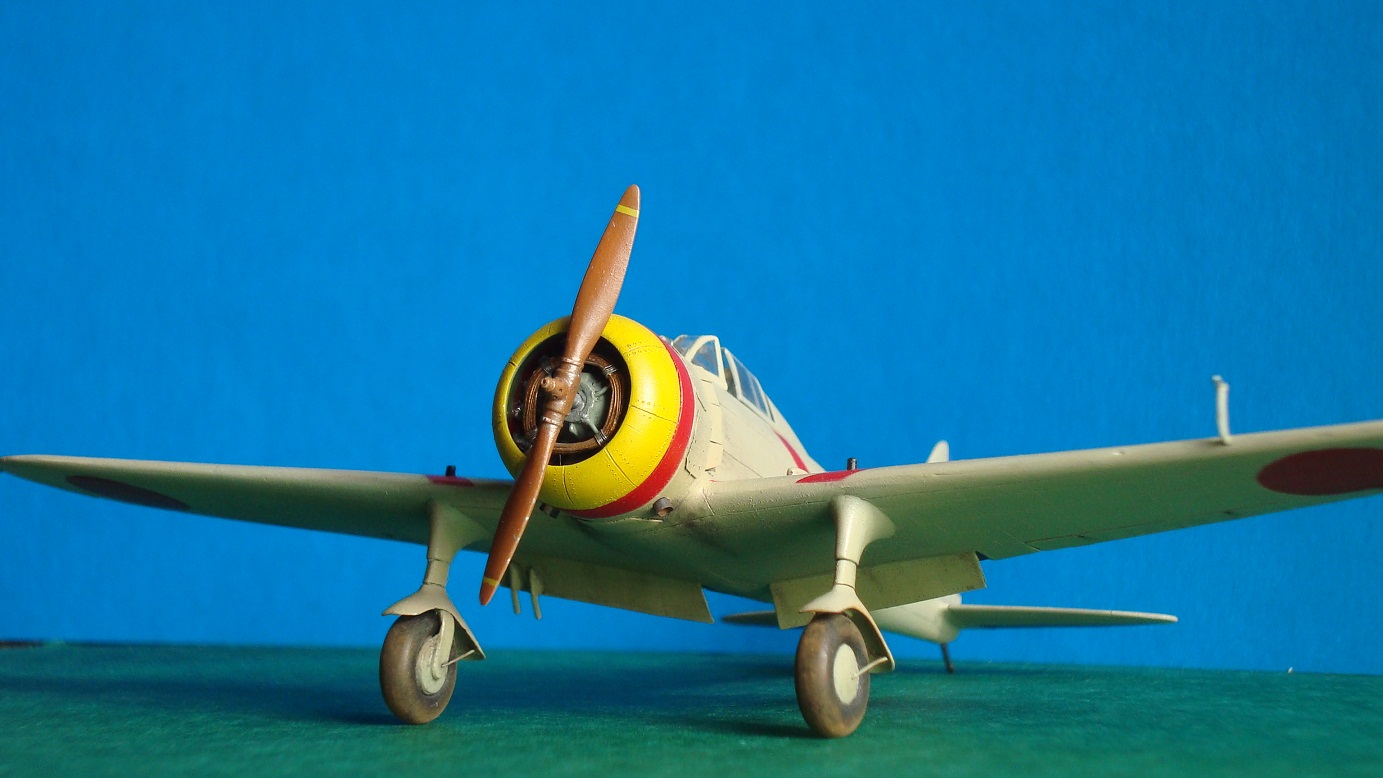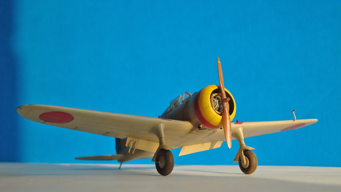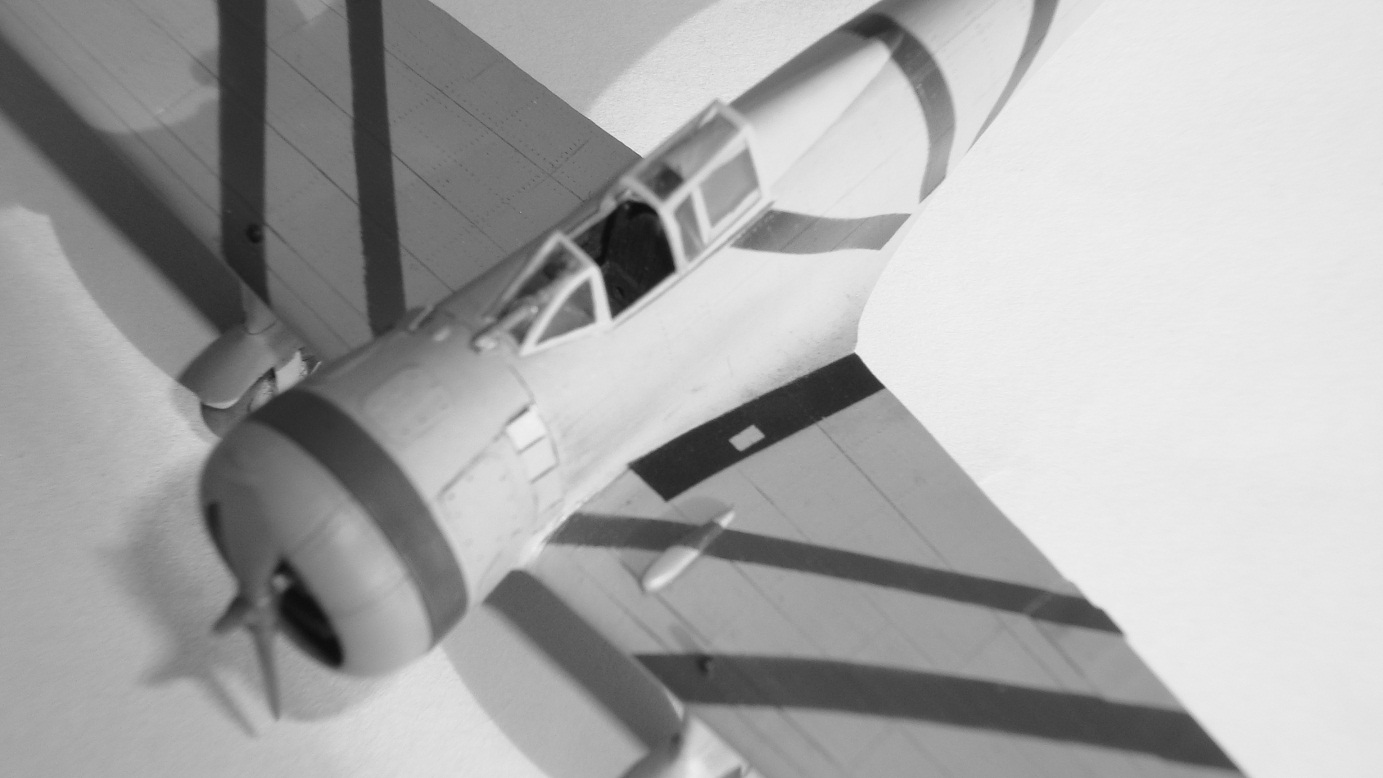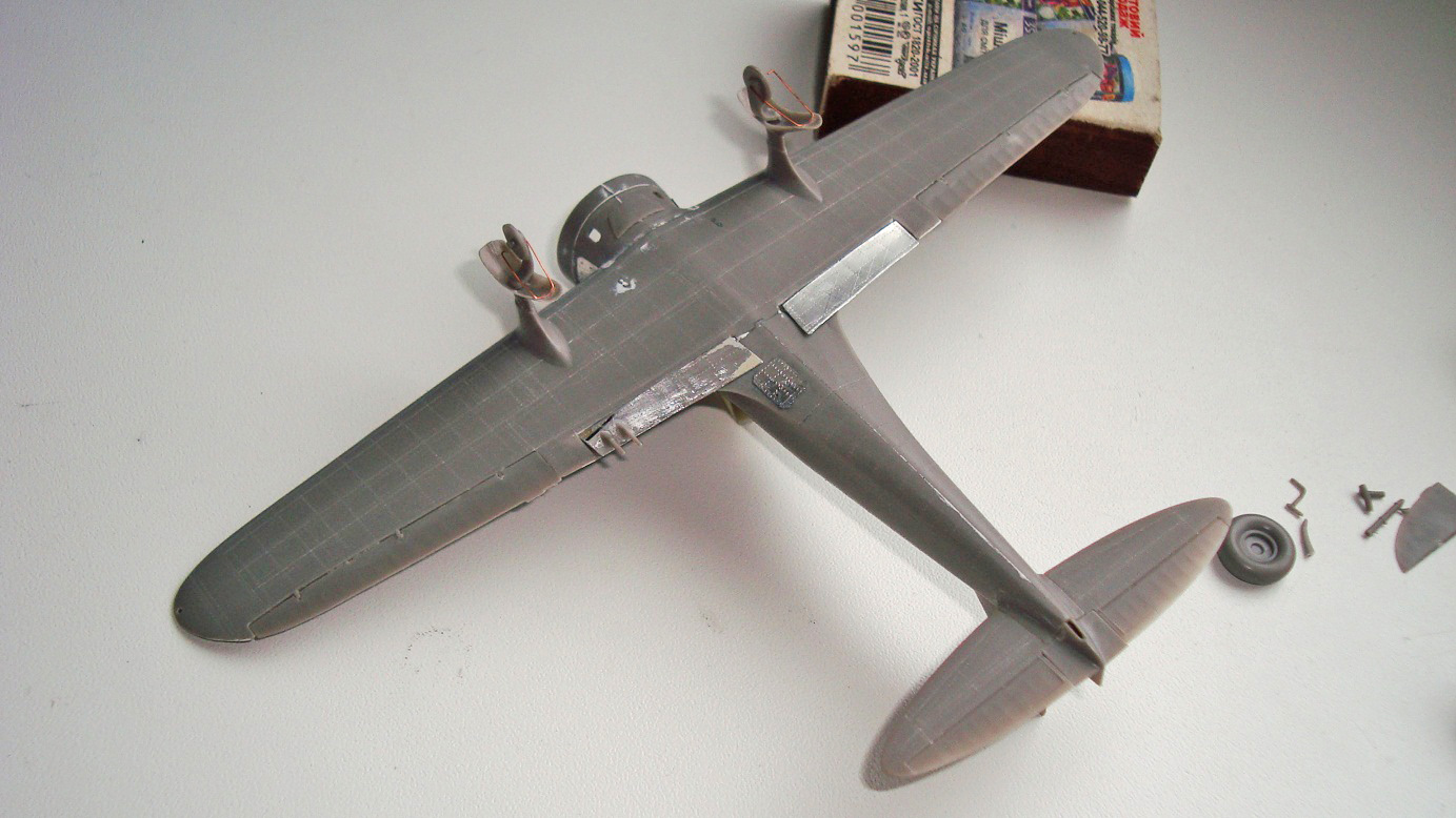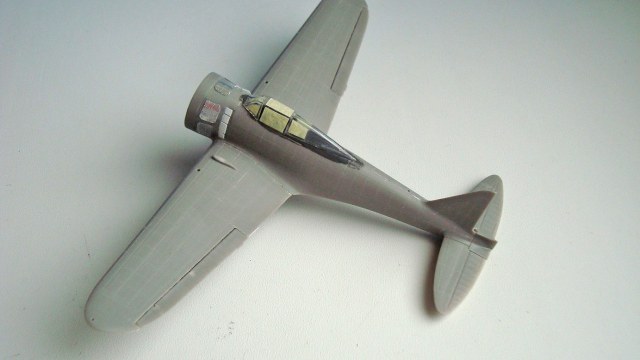 Шпаклевалось тамией и супером. Доработок хватало – некоторые есть на фото процесса. Позабавил себя зеркалом, сделал кабину и прочее. Травла категорически нет. Клёпка - до нанесения грунта. Окраска – «Хобби», дека – только иероглиф на руле поворота.