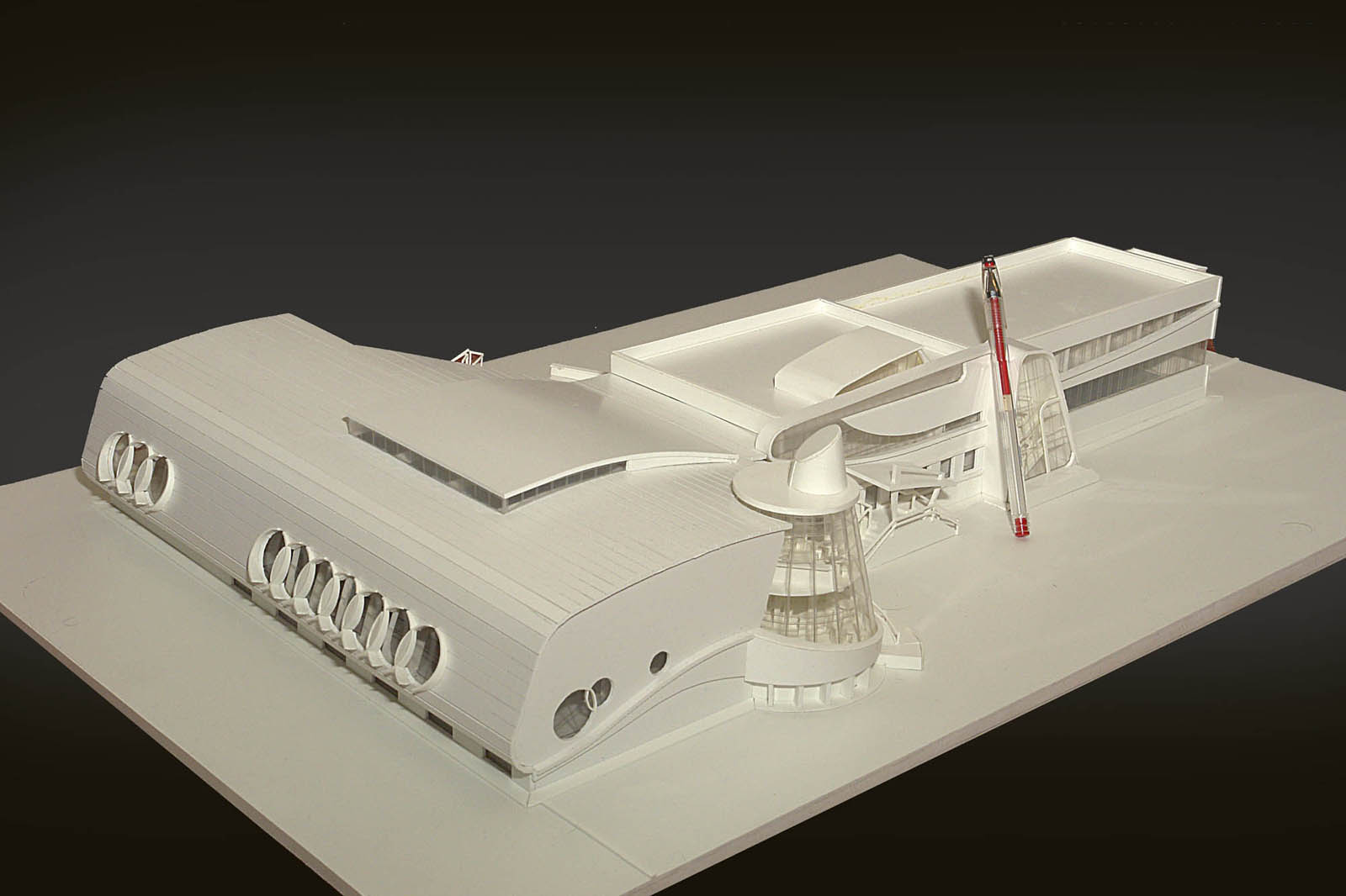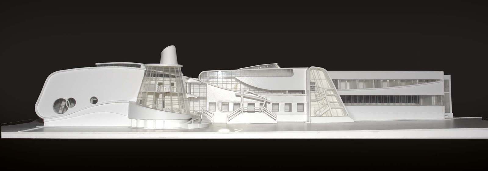 Еще одна из моих моделей. Бассейн в Москве в Видном. Также строилась на заказ для выставки. Размер подмакетника примерно 80х60 см. Масштаб 1:50 Точнее не помню. Материал - ПВХ пластик
